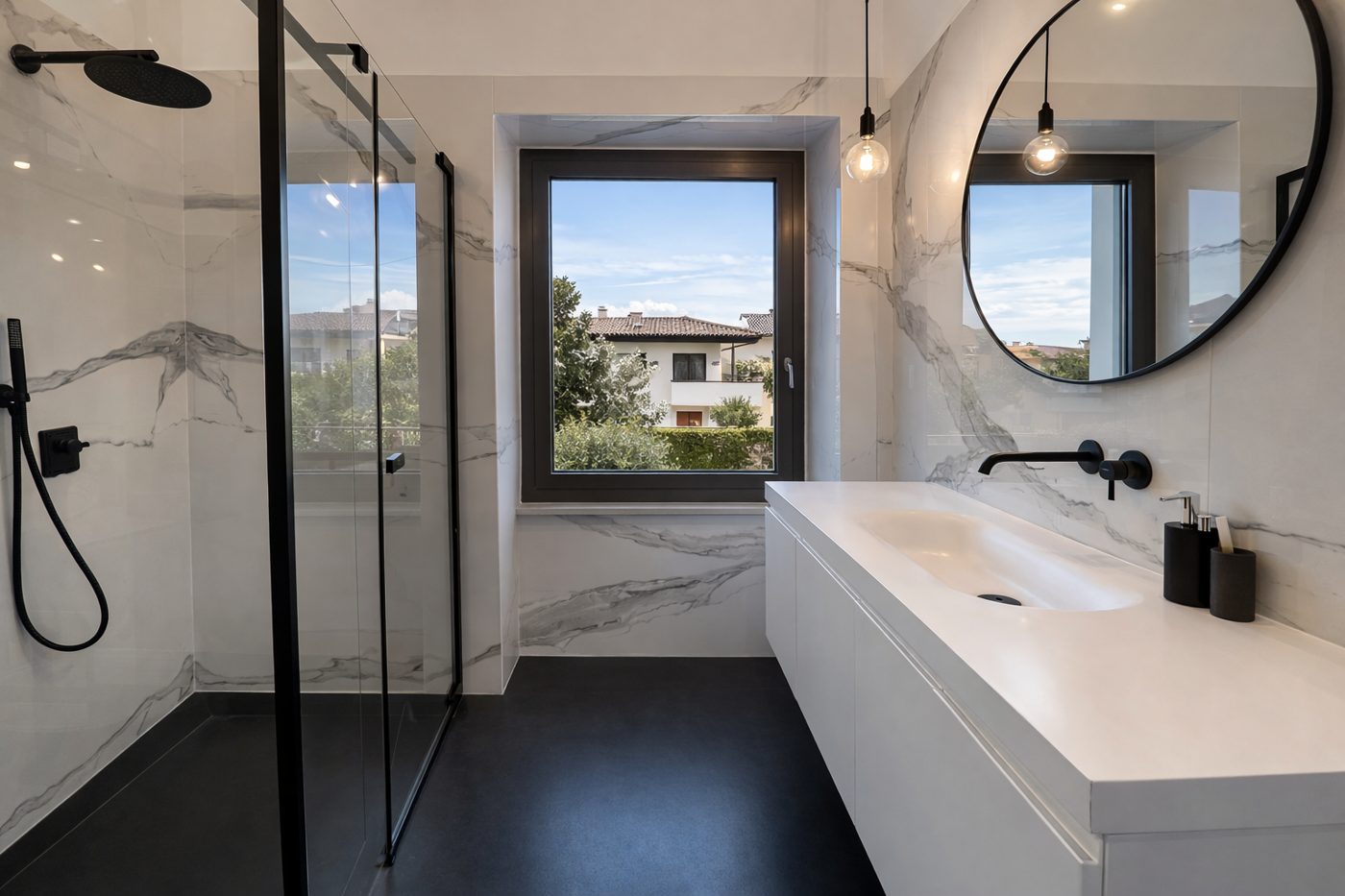INCLUSE NEL PREZZO FINITURE EXTRA CAPITOLATO: parquet in rovere in tutti gli ambienti, doccia walk-in, split ad alta efficienza energetica per l'impianto di raffrescamento, impianto d'allarme gi istallato e basculante con sezionale elettrica e addolcitore dell'acqua.