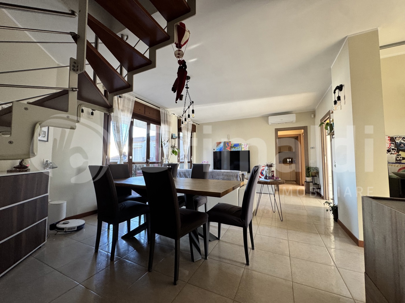 L'immobile cos suddiviso: ampio e luminoso soggiorno di 32 mq, cucina abitabile, due camere da letto, due bagni di cui uno con finestra, lavanderia, tre balconi per un totale di 14 mq, la sua doppia esposizione permette un ottimo riciclo d'aria, grande terrazzo di 95 mq, perfetto per vivere all'aperto, sottotetto di 95 mq sfruttabile come spazio aggiuntivo.