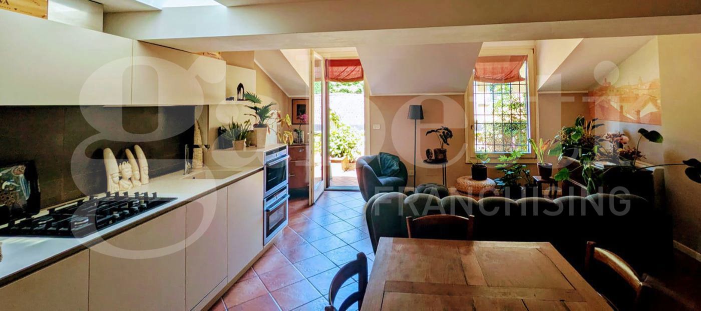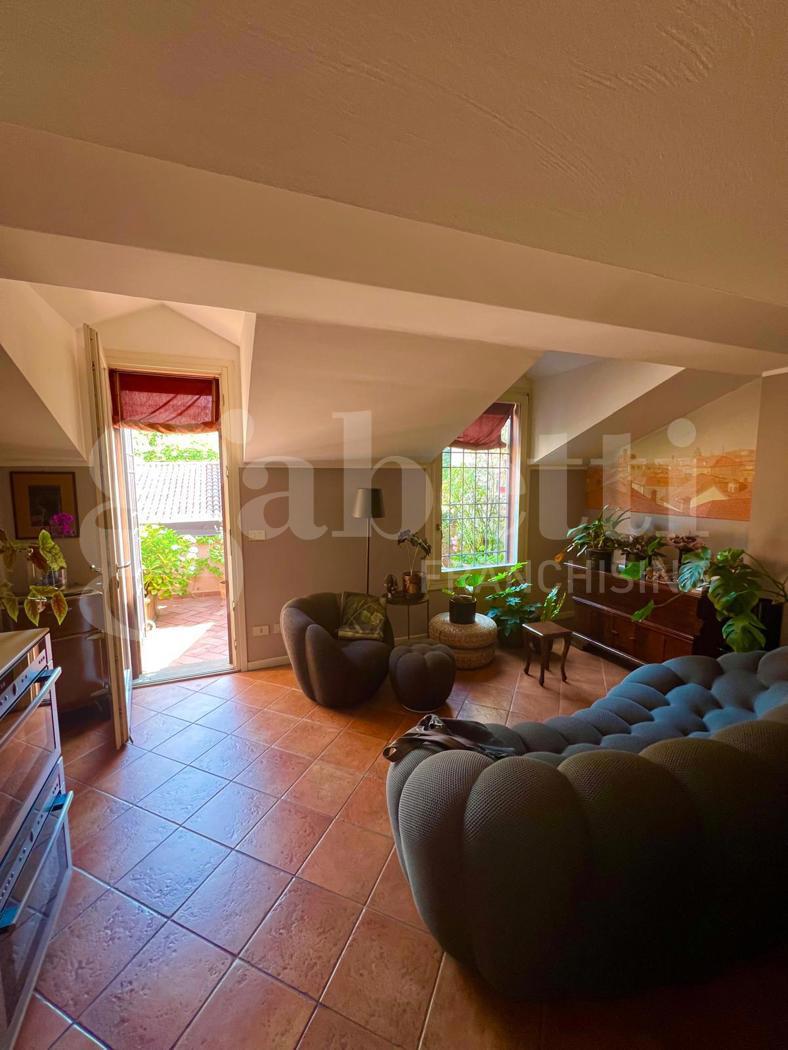 L'Immobile occupa l'intero piano e dispone di un doppio ingresso dal pianerottolo: l'accesso principale conduce all'ampia zona giorno open space che si apre direttamente su una splendida terrazza ad asola di 16 metri quadrati ricavata nel tetto, elemento di rara reperibilit che garantisce eccezionale luminosit e uno spazio esterno riservato e vivibile.