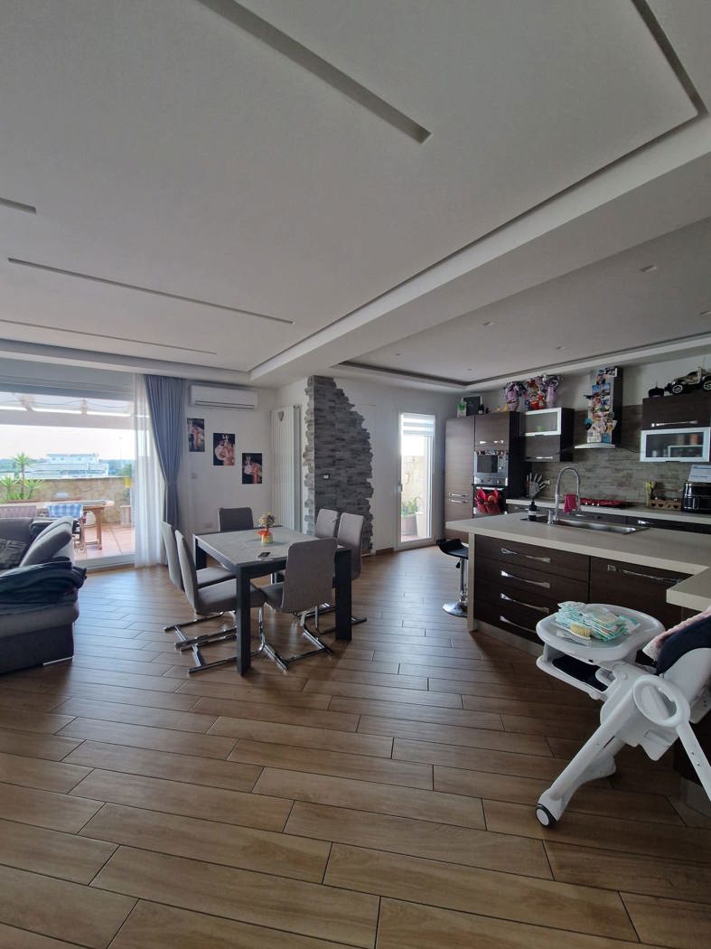 Proponiamo in vendita un elegante attico situato in un contesto residenziale riservato e tranquillo di Mesagne.
