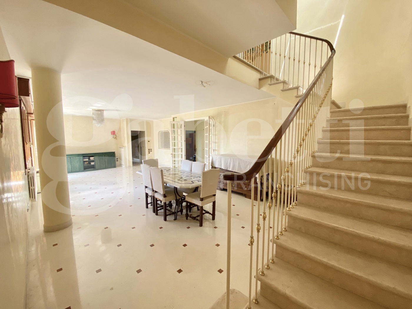 Il terzo piano composto da ingresso con vetrata, salone di rappresentanza di mq. 60 con elegante scala a vista in , ampia cucina con zona pranzo.