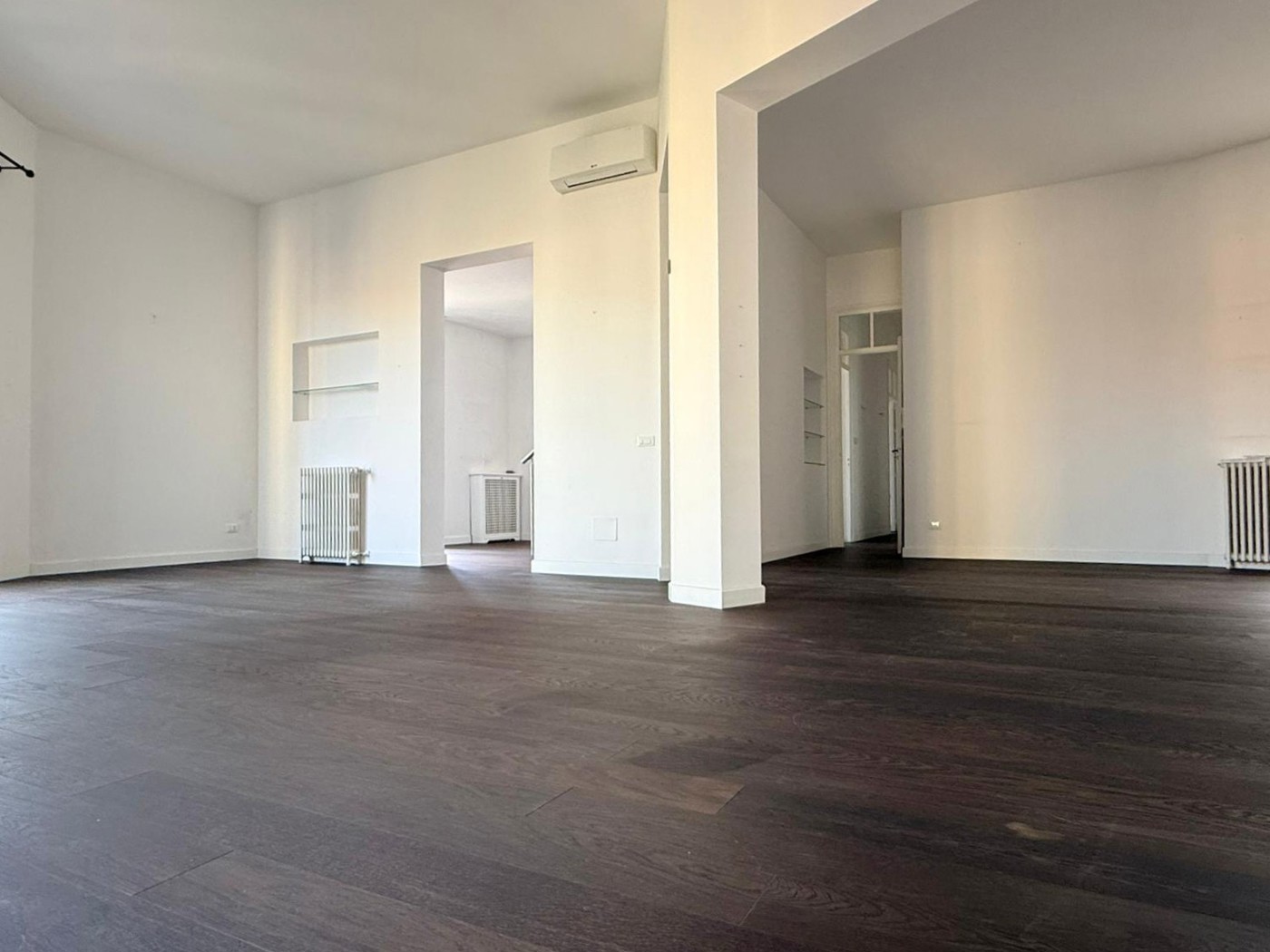 L'accesso al 5° piano con ingresso su elegante disimpegno che forma un unico ambiente con il raffinato salone, illuminato dai due affacci panoramici su Piazza Amendola, a seguire il corridoio di disimpegno che immette alla zona notte ove abbiamo una camera da letto (adibita a studio), camera patronale con ampia cabina armadio e 2 wc con doccia.