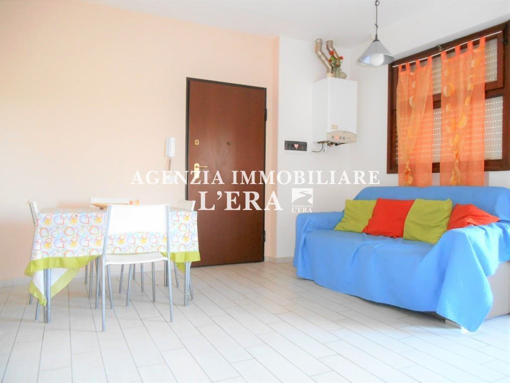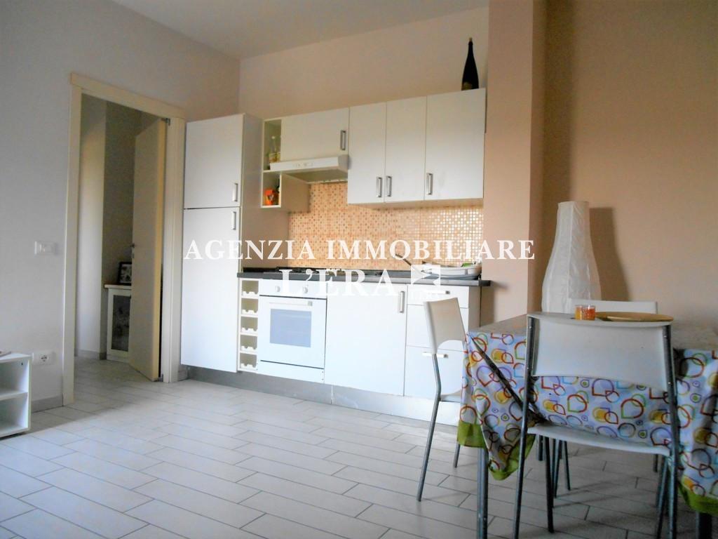 con posto auto nel resede condominiale, completamente arredato pronto per essere abitato: soggiorno/pranzo/cottura con bel terrazzo panoramico che affaccia sul verde, dis. notte, camera matrimoniale e bagno.