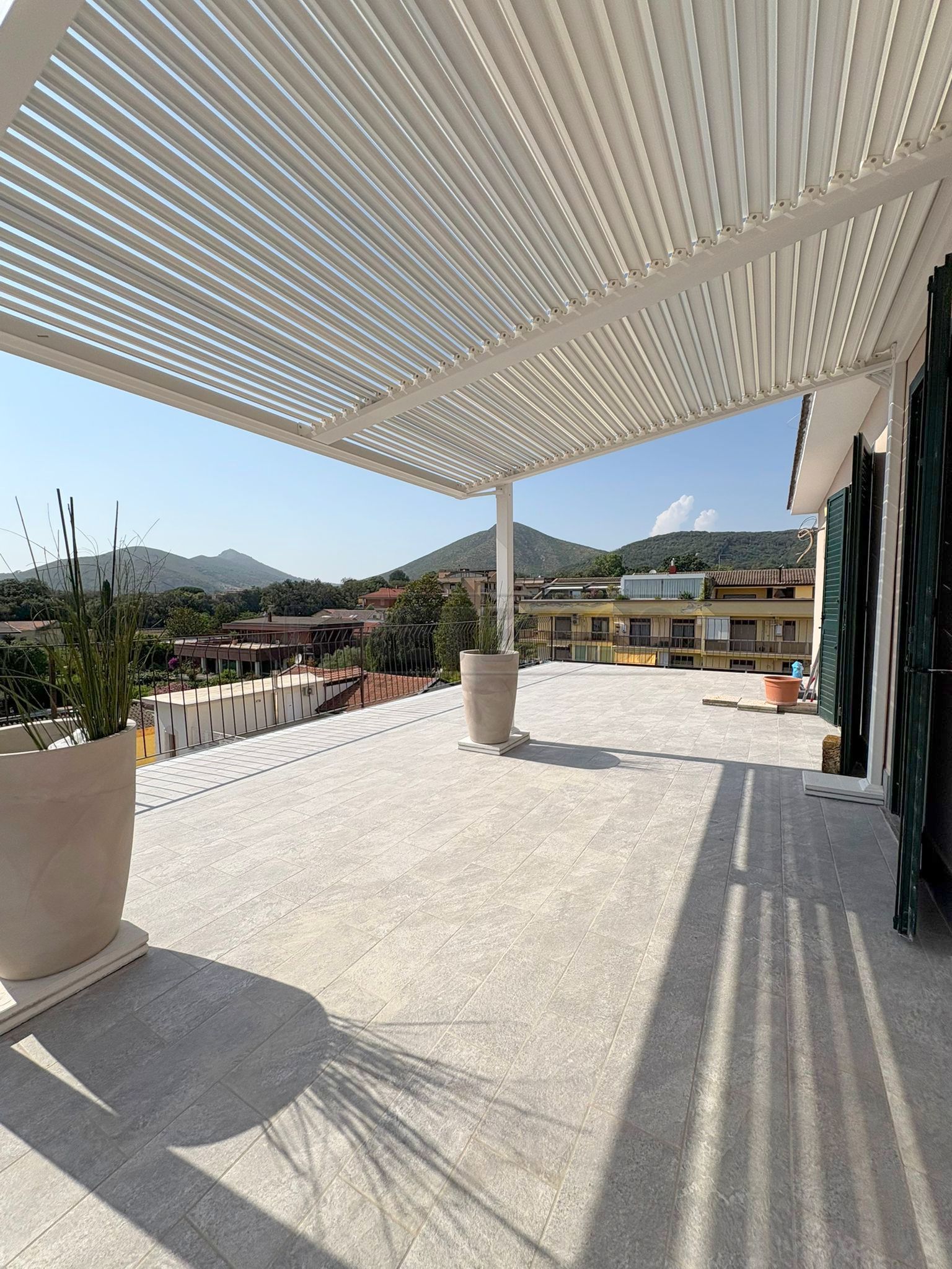 Lappartamento si distingue per il meraviglioso terrazzo panoramico di 48 mq, completo di gazebo nuovo, con vista diretta sui giardini della Reggia di Caserta e tripla esposizione Est-Sud-Ovest, che garantisce luce naturale tutto il giorno.