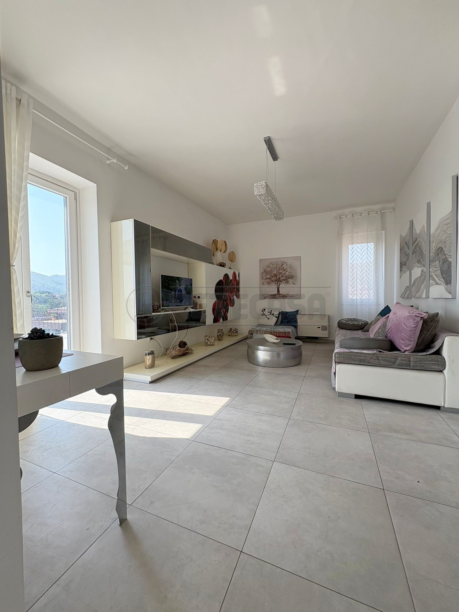 Caratteristiche principali: Superficie interna: 110 mq Terrazzo panoramico: 48 mq Piano: 3° (senza ascensore) Posto auto: esterno in area condominiale Cantina: inclusa Composizione interna: Ingresso , ampio soggiorno luminoso, spaziosa cucina abitabile (con possibilità di ricavare un secondo bagno), ampio disimpegno, 2 camere da letto, 1 bagno finestrato.