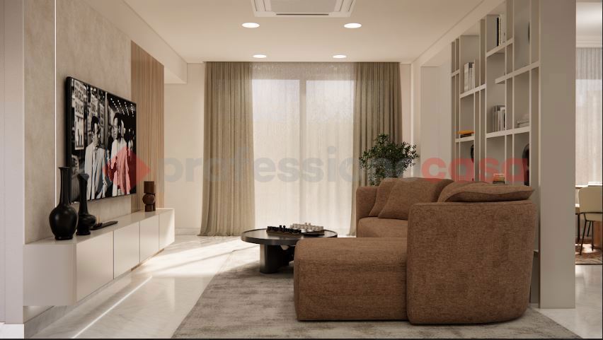 Gli Interni: Eleganza su Unico Livello L'abitazione si sviluppa armoniosamente su un unico piano, dove il marmo bianco di Carrara dei pavimenti riflette la luce naturale che inonda ogni stanza: Zona Giorno: Un ampio open space dal taglio moderno con cucina a vista, perfetto per l'accoglienza e la convivialit, oltre ad un bagno di servizio ad uso ospiti Zona Notte: Due camere da letto matrimoniali spaziose ognuna con bagno dedicato.
