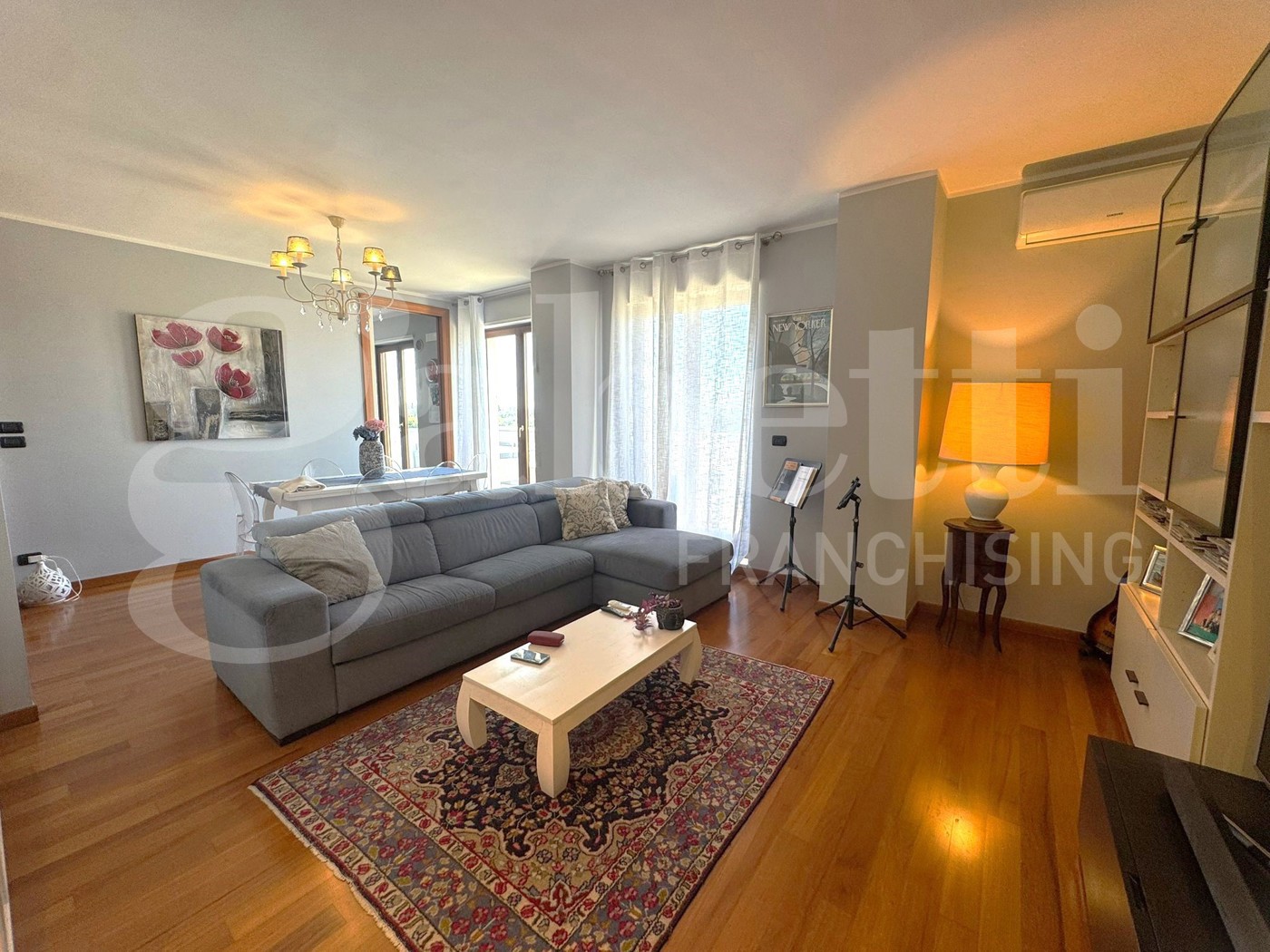 PALESE - VICO XX VITTORIO EMANUELE In zona centrale a palese Res. Parco del Riccio, in contesto residenziale e ben servito, proponiamo in vendita un elegante e luminoso ATTICO di 4 vani su due livelli, ideale per chi desidera vivere in un contesto centrale, ben servito e a pochi passi dal mare. Al quarto piano lingresso si apre su un salone doppio a vista, perfetto per accogliere ospiti e vivere la quotidianit in totale comfort, cucina con zona lavanderia, un bagno, un comodo ripostiglio e una camera da letto con bagno privato.