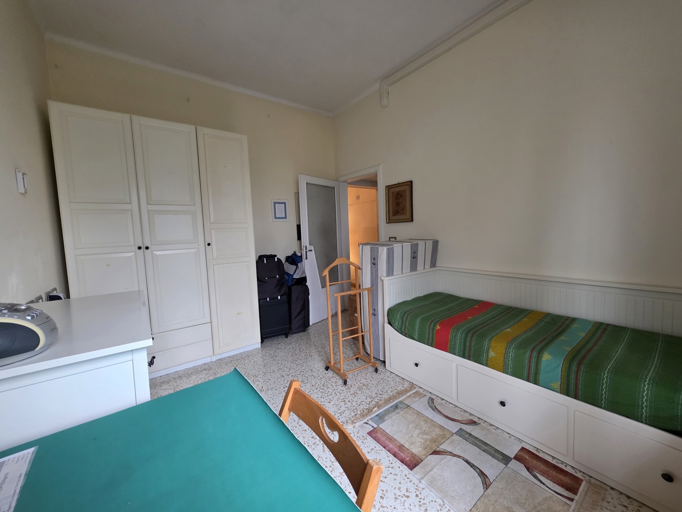 Lattuale camera padronale collegata direttamente a un comodo ripostiglio nel quale stata ricavata una pratica cabina armadio, soluzione funzionale che valorizza ulteriormente gli spazi, oltre a due bagni.