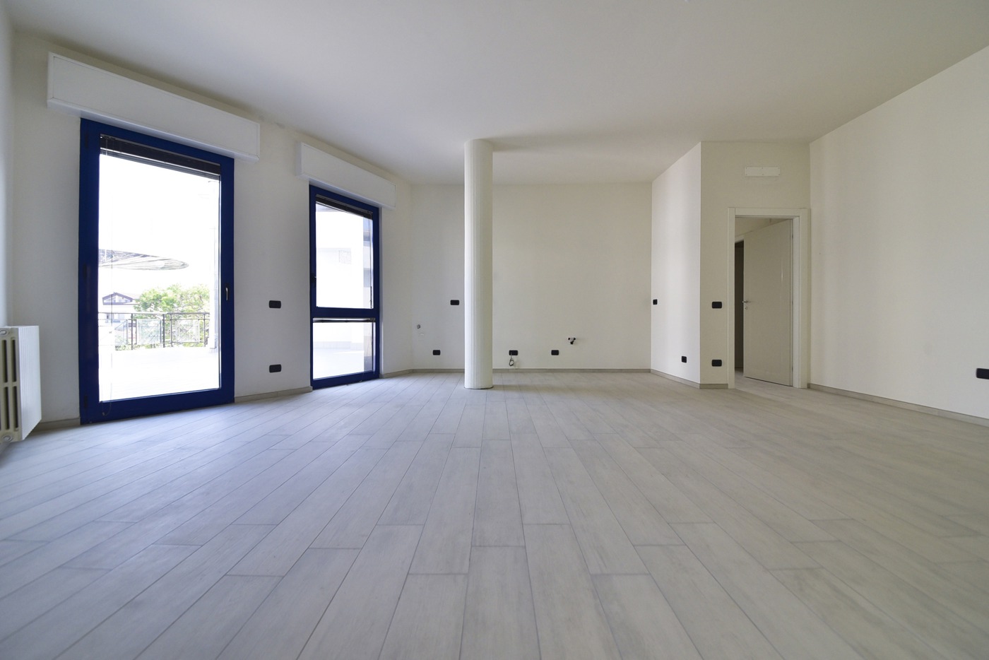 La soluzione composta da: ingresso, soggiorno con angolo cottura a vista collegata al terrazzo, doppio bagno, camera matrimoniale e camera singola.