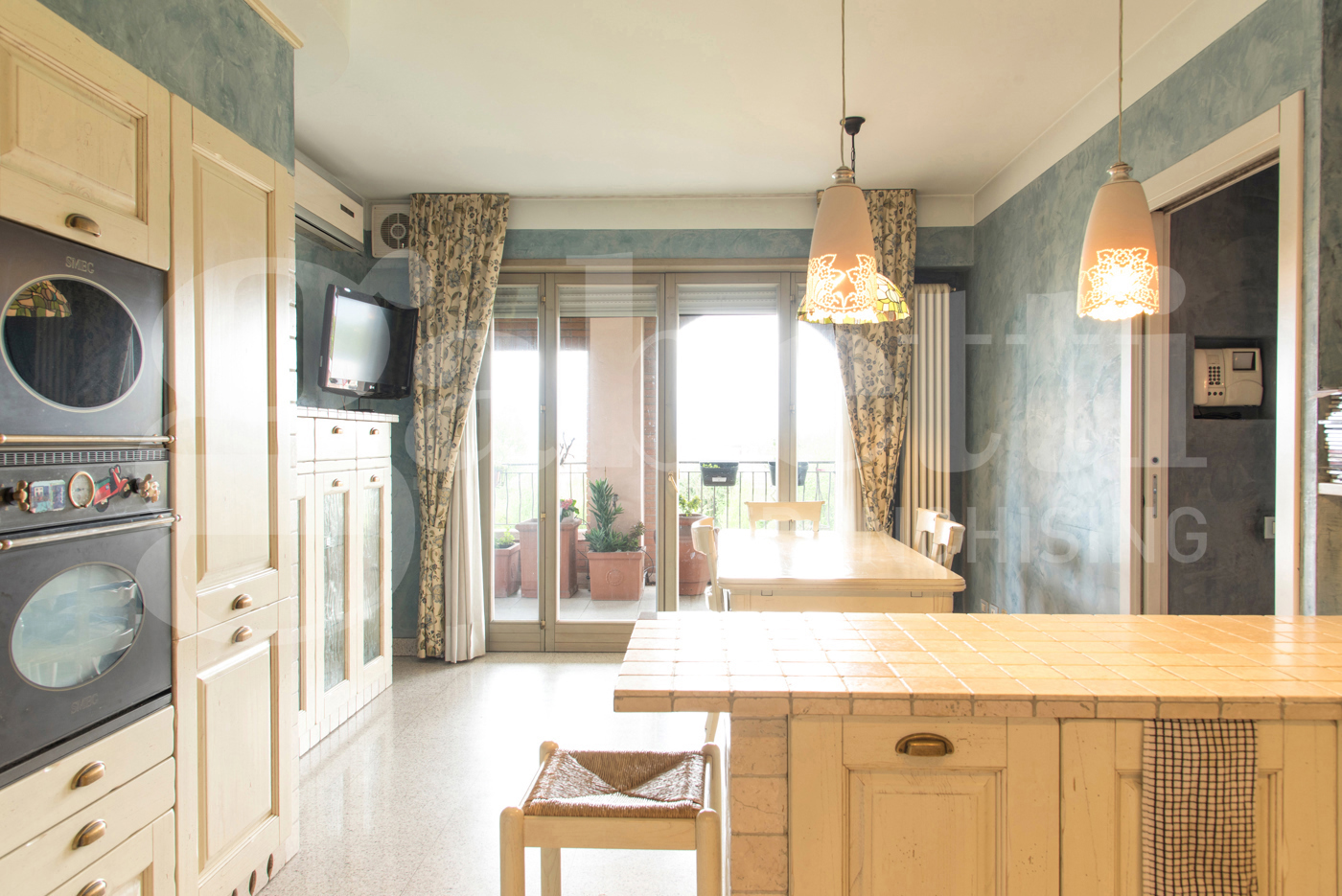 L'appartamento caratterizzato dalla tripla esposizione Sud-Est-Ovest ed libero su tutti e quattro i lati. Al momento nell'appartamento presente la scala interna che conduce al Superattico, tale scala verr rimossa dalla propriet e al suo posto verr realizzato un ripostiglio.