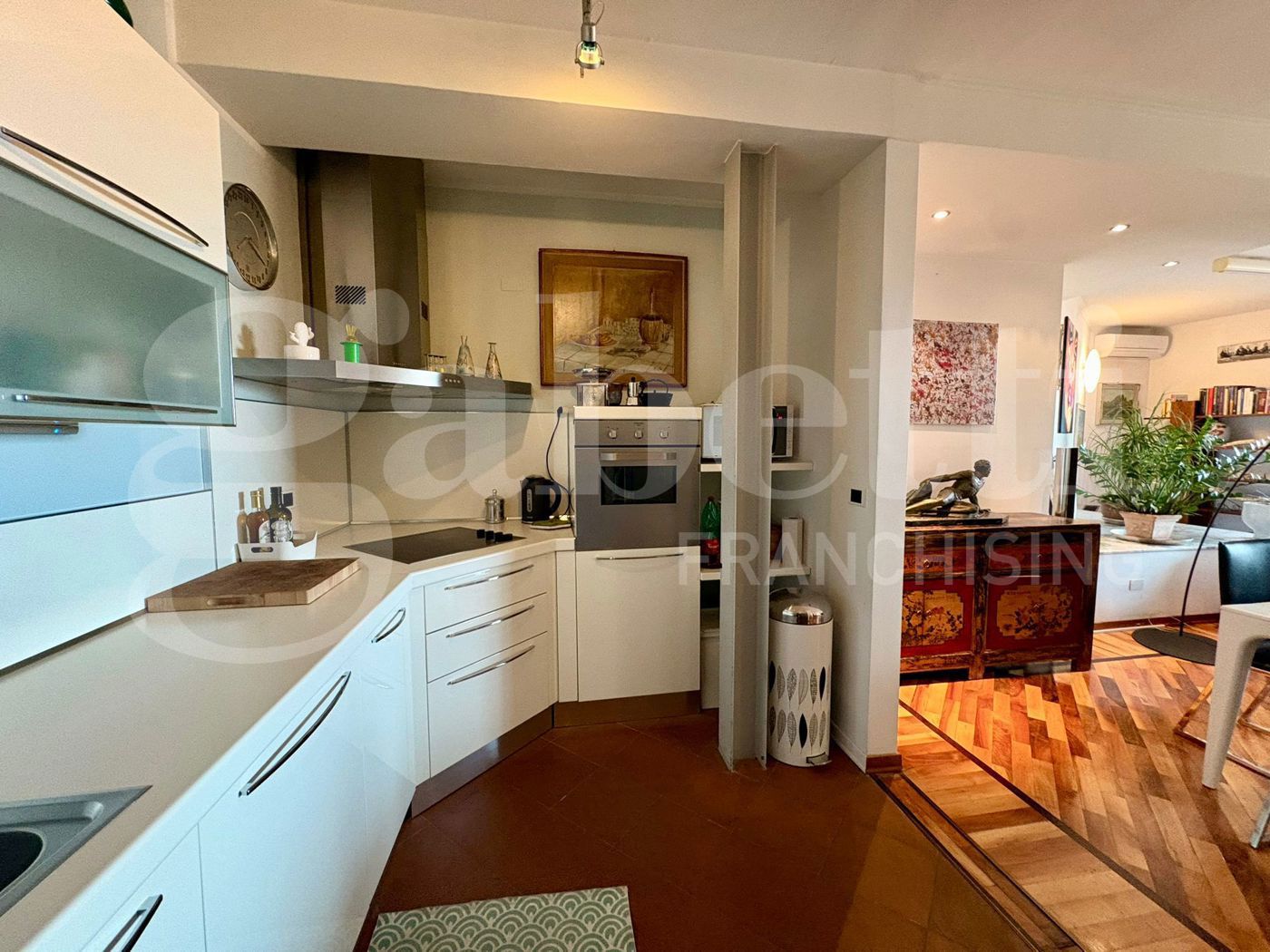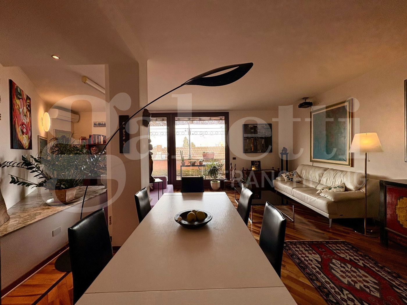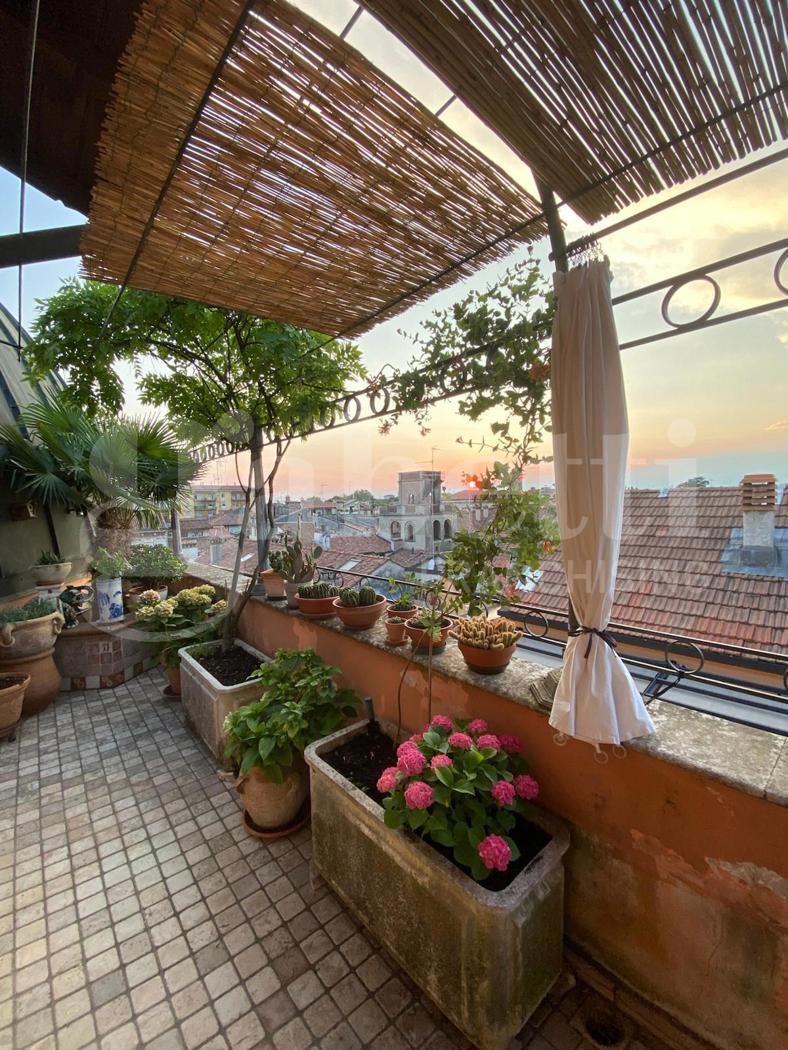 Una spettacolare vetrata dona all'ambiente una luce naturale e conduce alla vera protagonista della casa: una magnifica terrazza privata, ampia e riservata, dalla quale si gode una suggestiva vista sui tetti del centro storico, in un contesto di assoluta tranquillit.