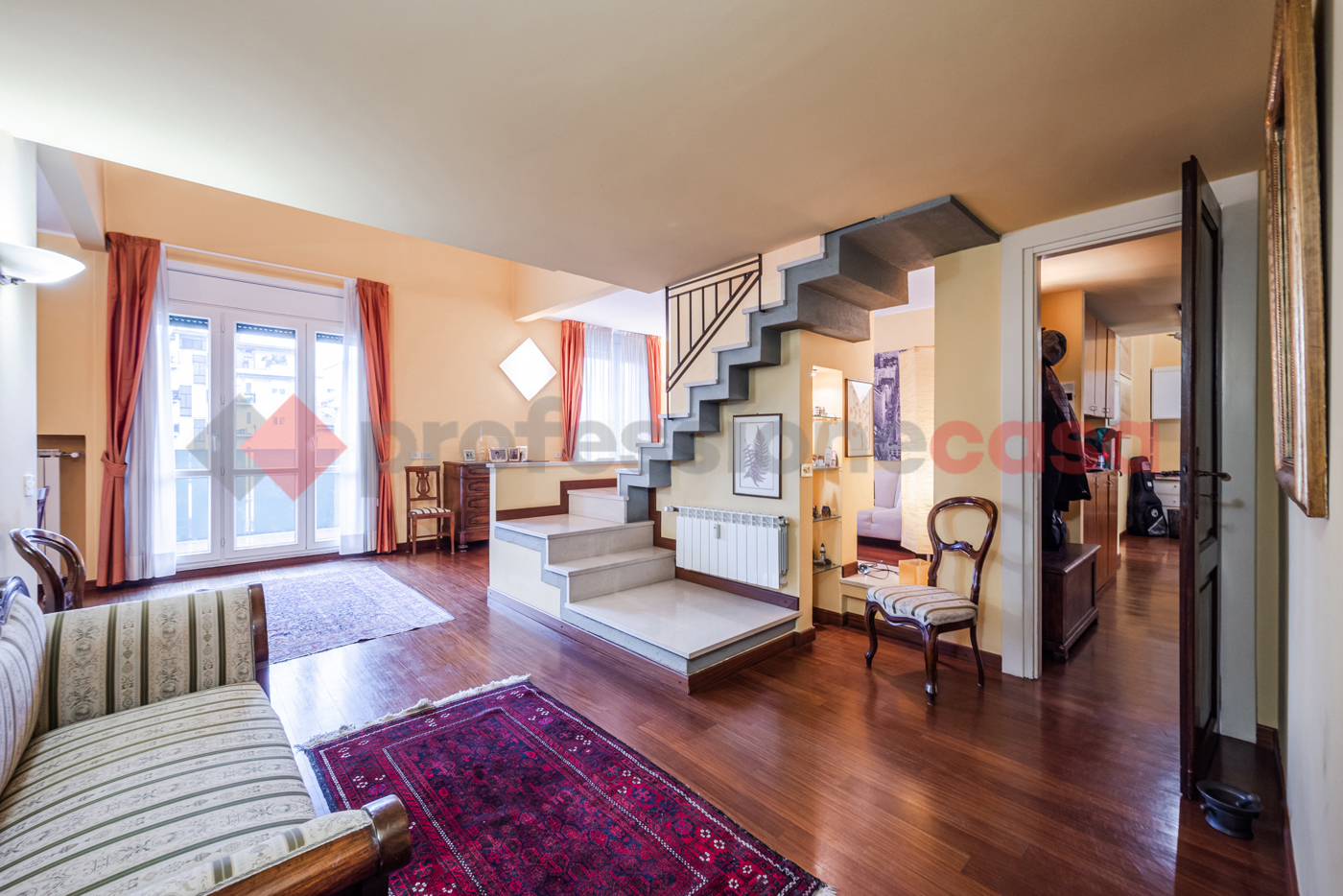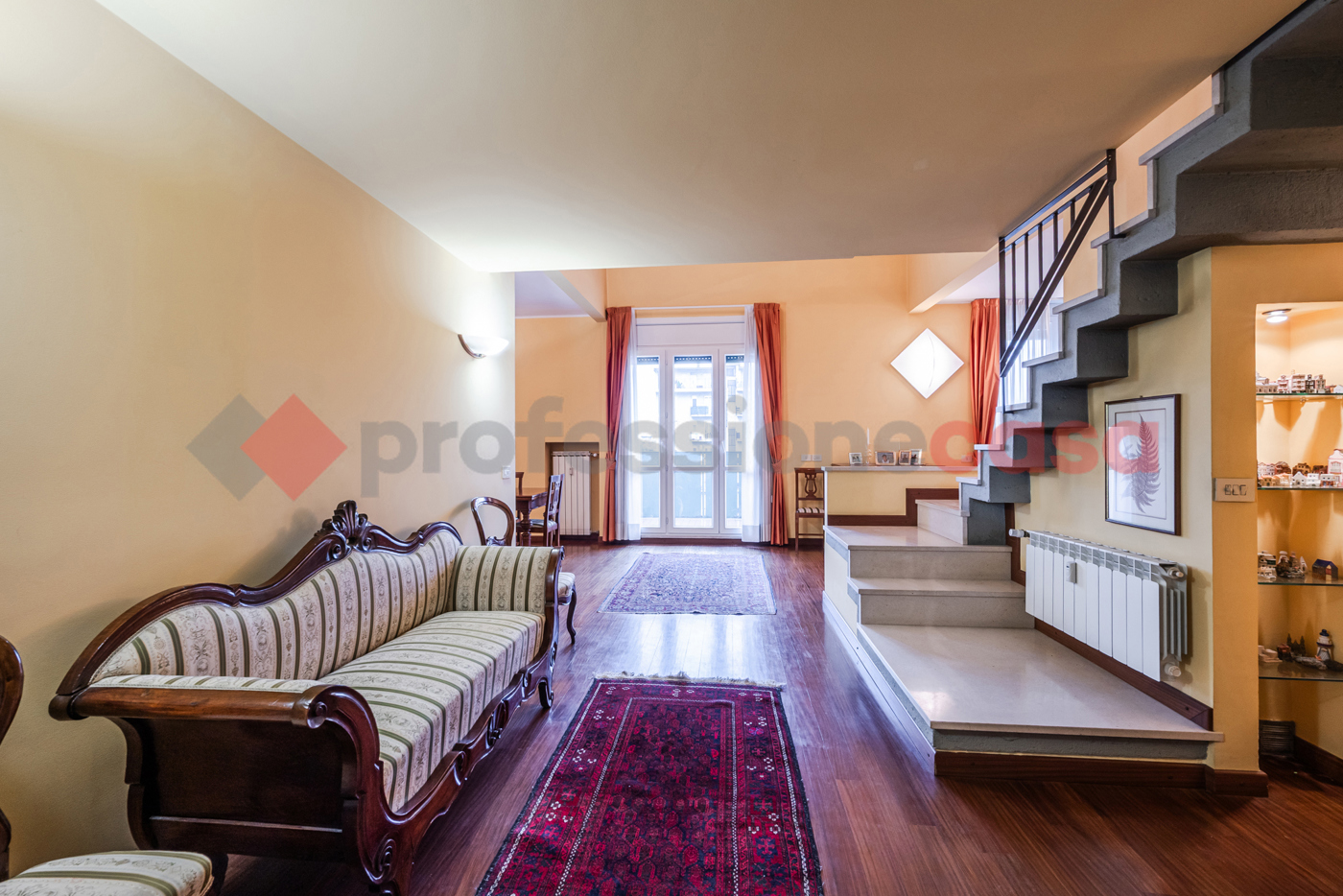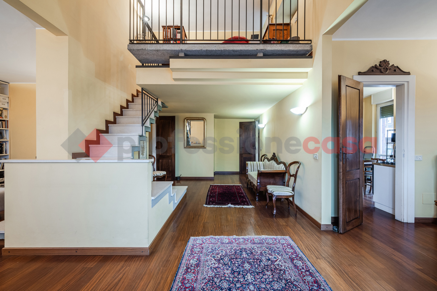 Lingresso conduce a una zona living spettacolare a doppia altezza, con ampie vetrate e affacci completamente interni e riservati, che garantiscono tranquillit e privacy.