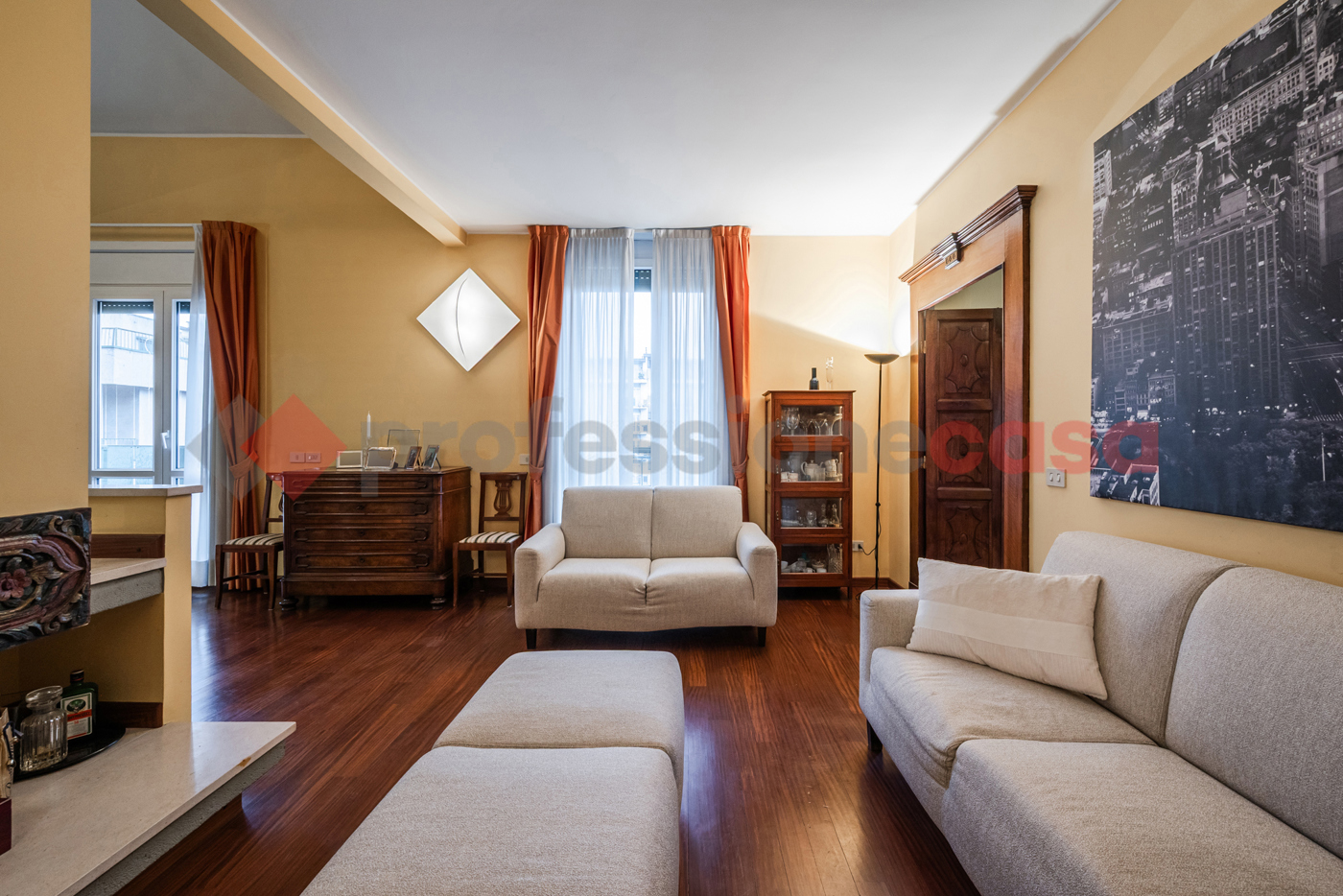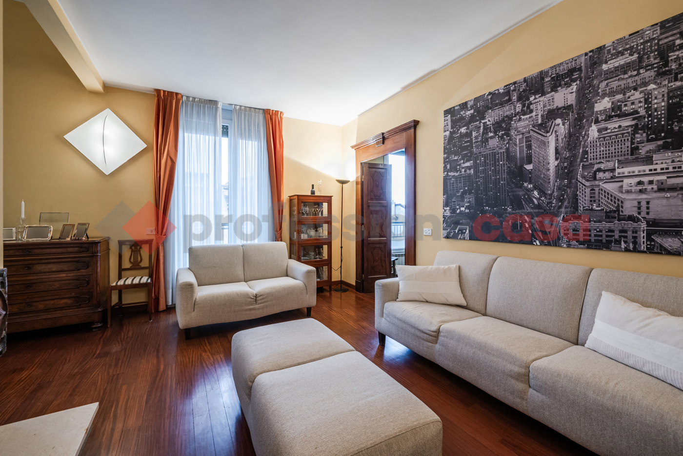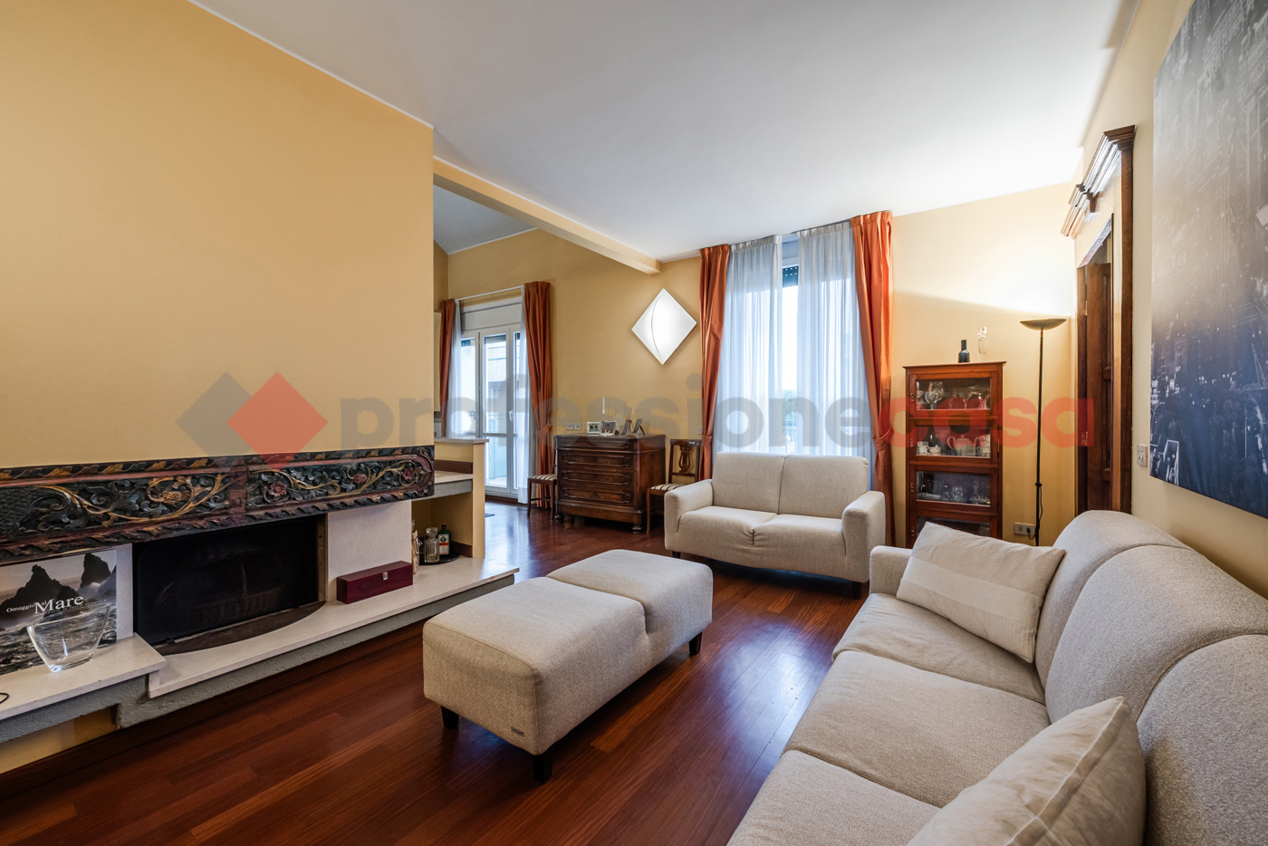 Lingresso conduce a una zona living spettacolare a doppia altezza, con ampie vetrate e affacci completamente interni e riservati, che garantiscono tranquillit e privacy.