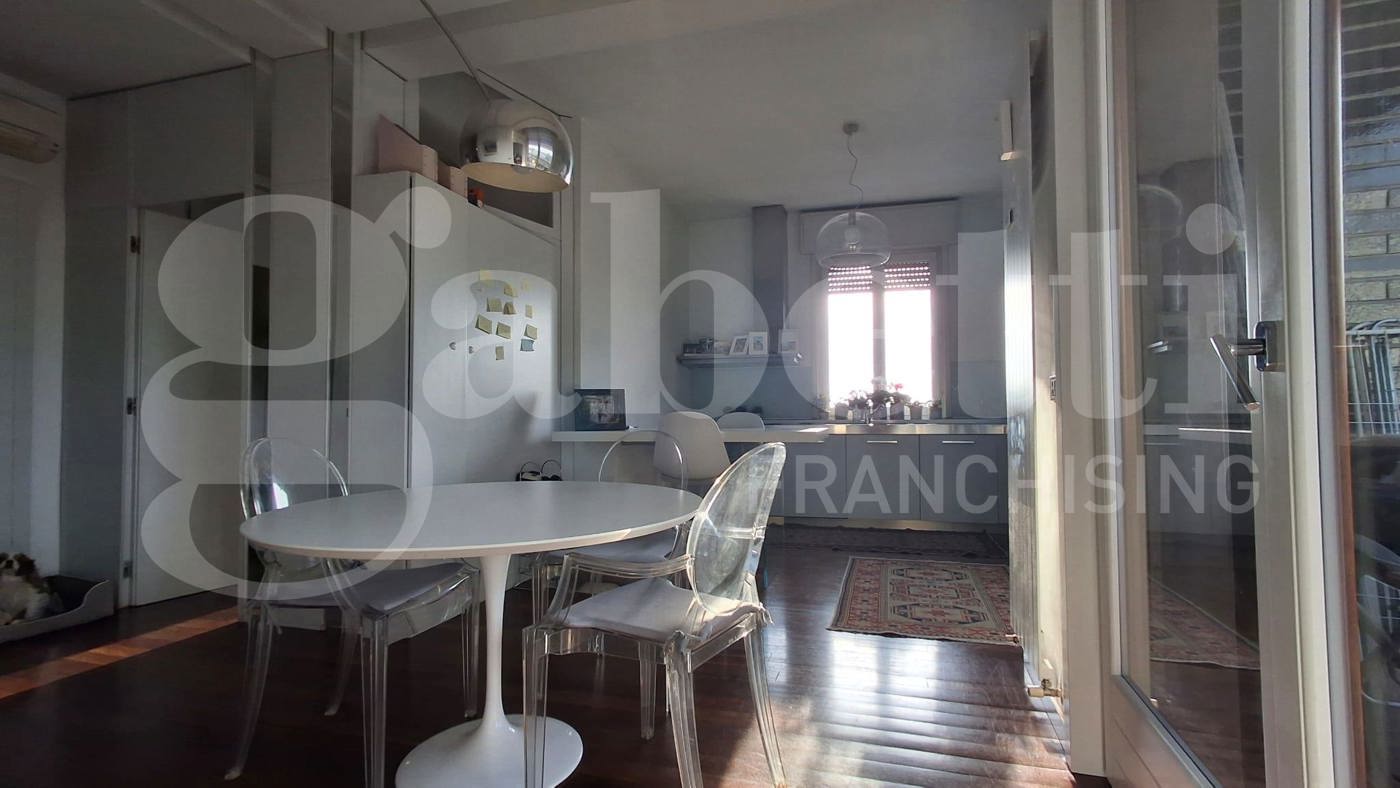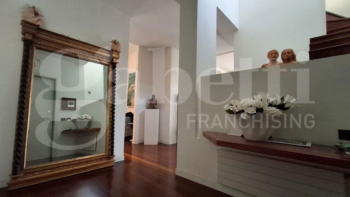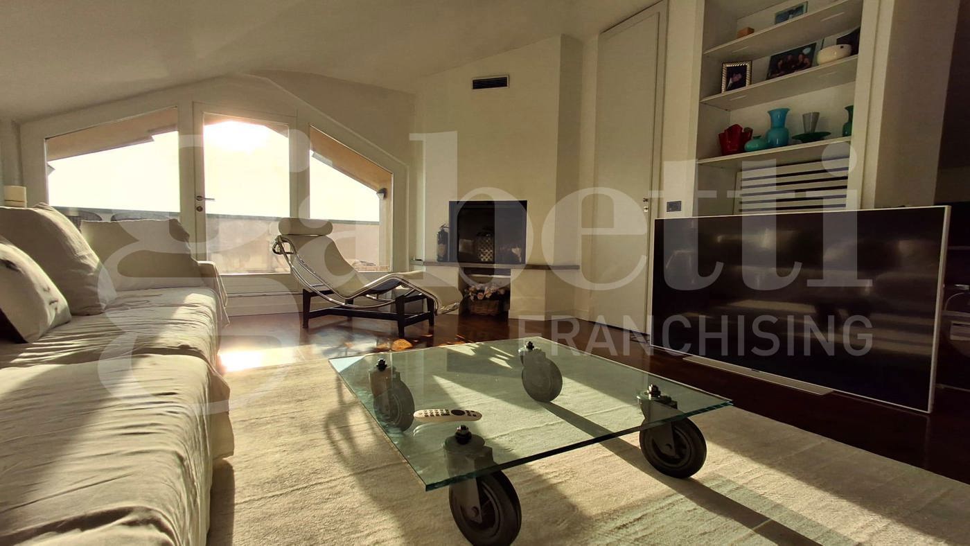 L'elegante appartamento, sito al quarto ed ultimo piano in condominio ben abitato e servito da ascensore, si sviluppa su due livelli e presenta finiture di gusto con elementi di design.