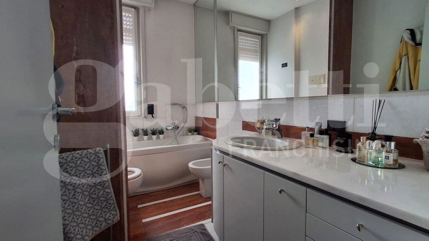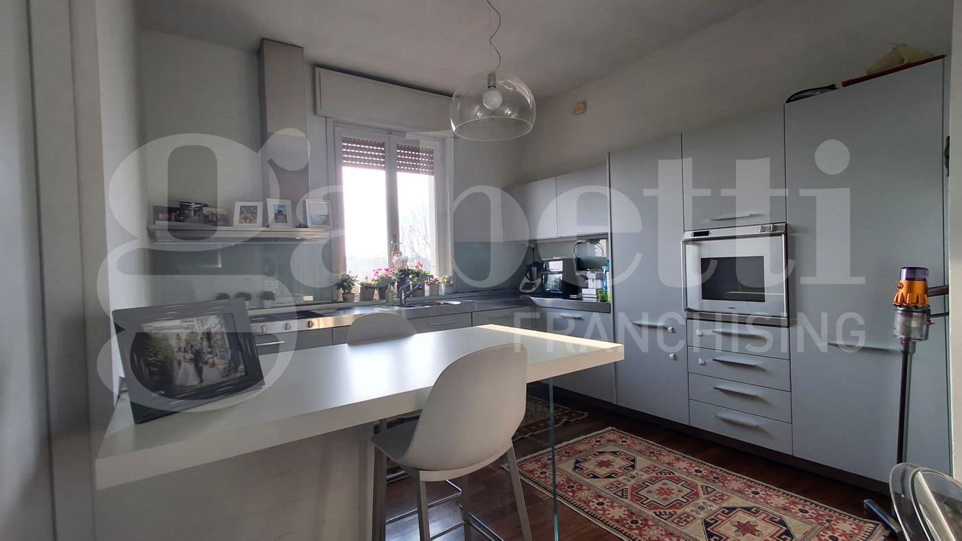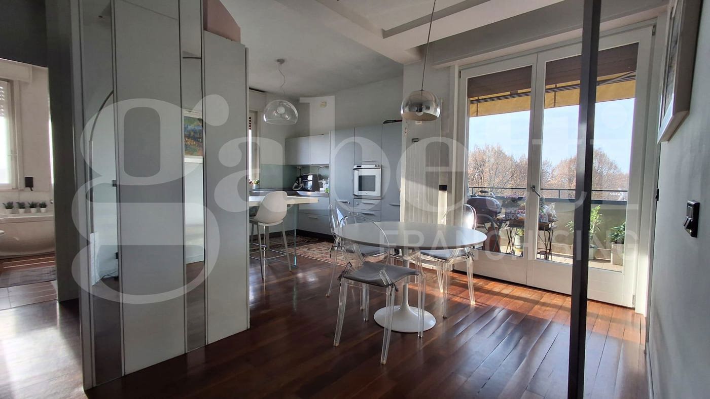 L'elegante appartamento, sito al quarto ed ultimo piano in condominio ben abitato e servito da ascensore, si sviluppa su due livelli e presenta finiture di gusto con elementi di design.