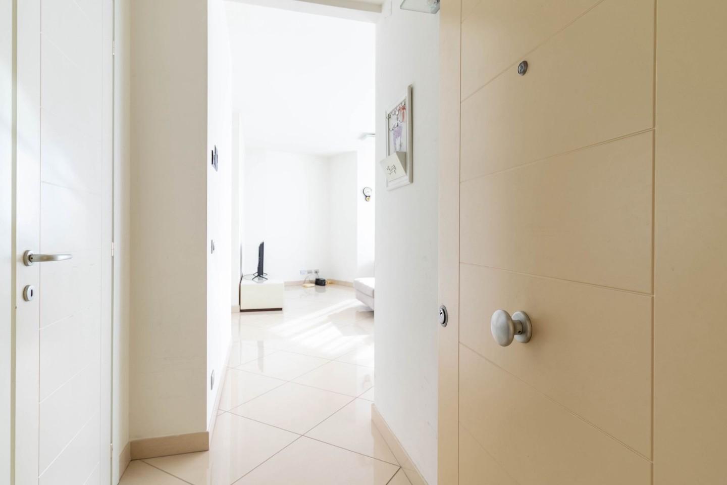 La terrazza abbraccia tutti gli ambienti con un esposizione sud, est e nord. Al piano quarto , collegato da una scala in vetro interna troviamo un locale tecnico ottimo come terza camera o studio, bagno completo ed un altra terrazza con due aiuole.