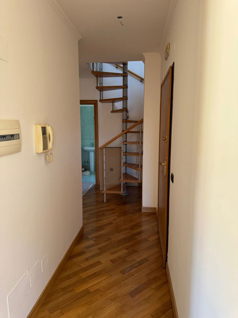 Limmobile occupa il 2° e 3° piano, ultimo, delle piccole palazzine in cortina con ascensore, ed composto da ingresso, soggiorno con angolo cottura e con doppio accesso al terrazzo, due camere da letto matrimoniali con affaccio diretto sul balcone angolare, ampio bagno finestrato con vasca idromassaggio; la scala interna, completamente realizzata in legno, conduce al piano superiore che ospita la comoda mansarda, dotata di due lucernari, un ulteriore spazio con molteplici funzionalit (tipo cabina armadio), il bagno al piano con doccia.