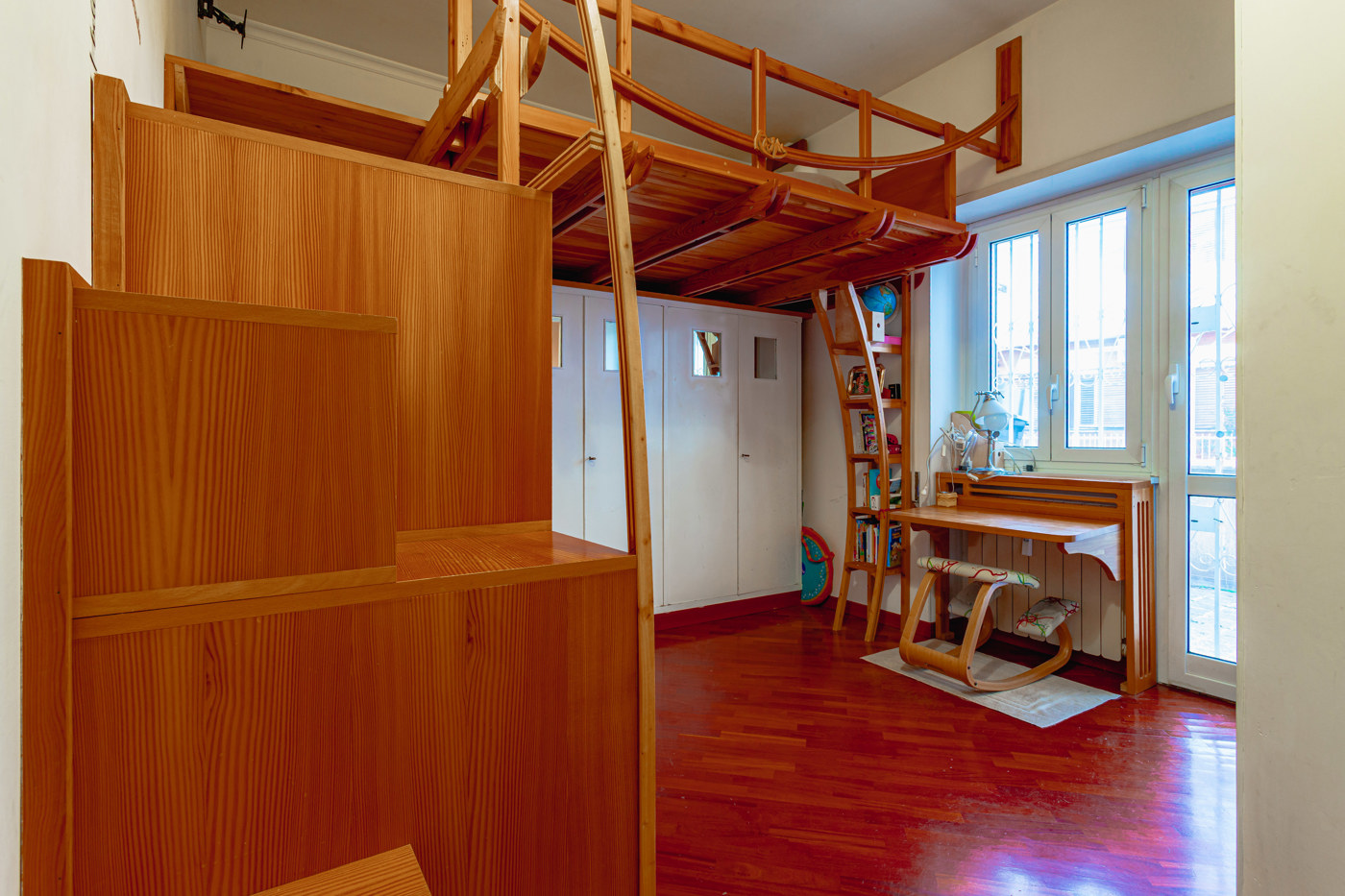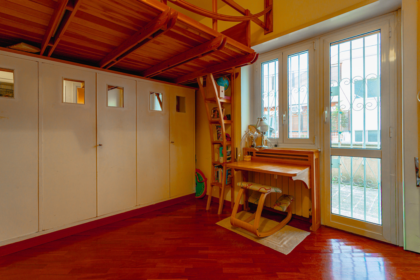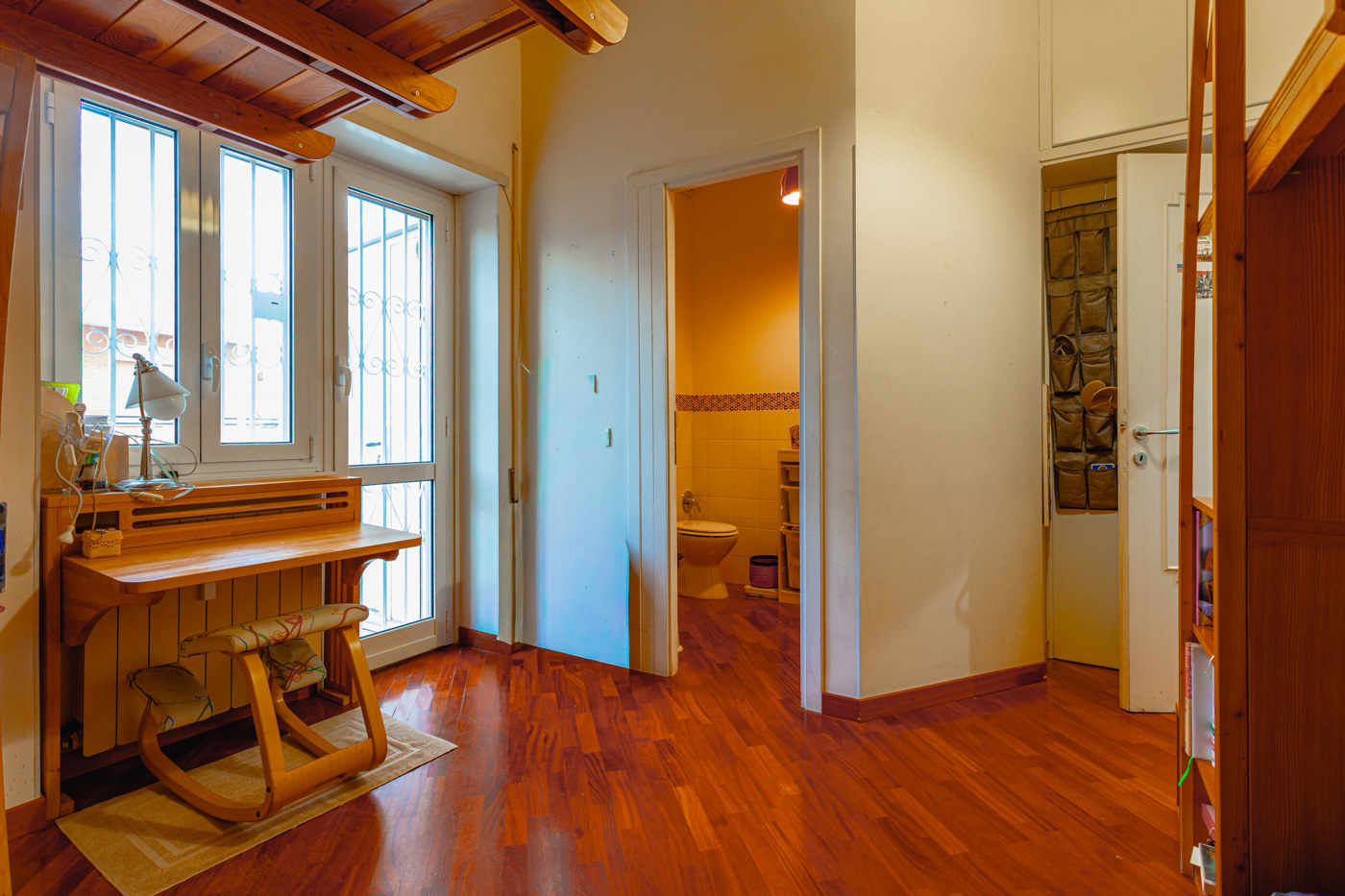 La camera padronale gode di una generosa metratura e di armadiature realizzate su misura, la seconda camera servita da un bagno completo di doccia.