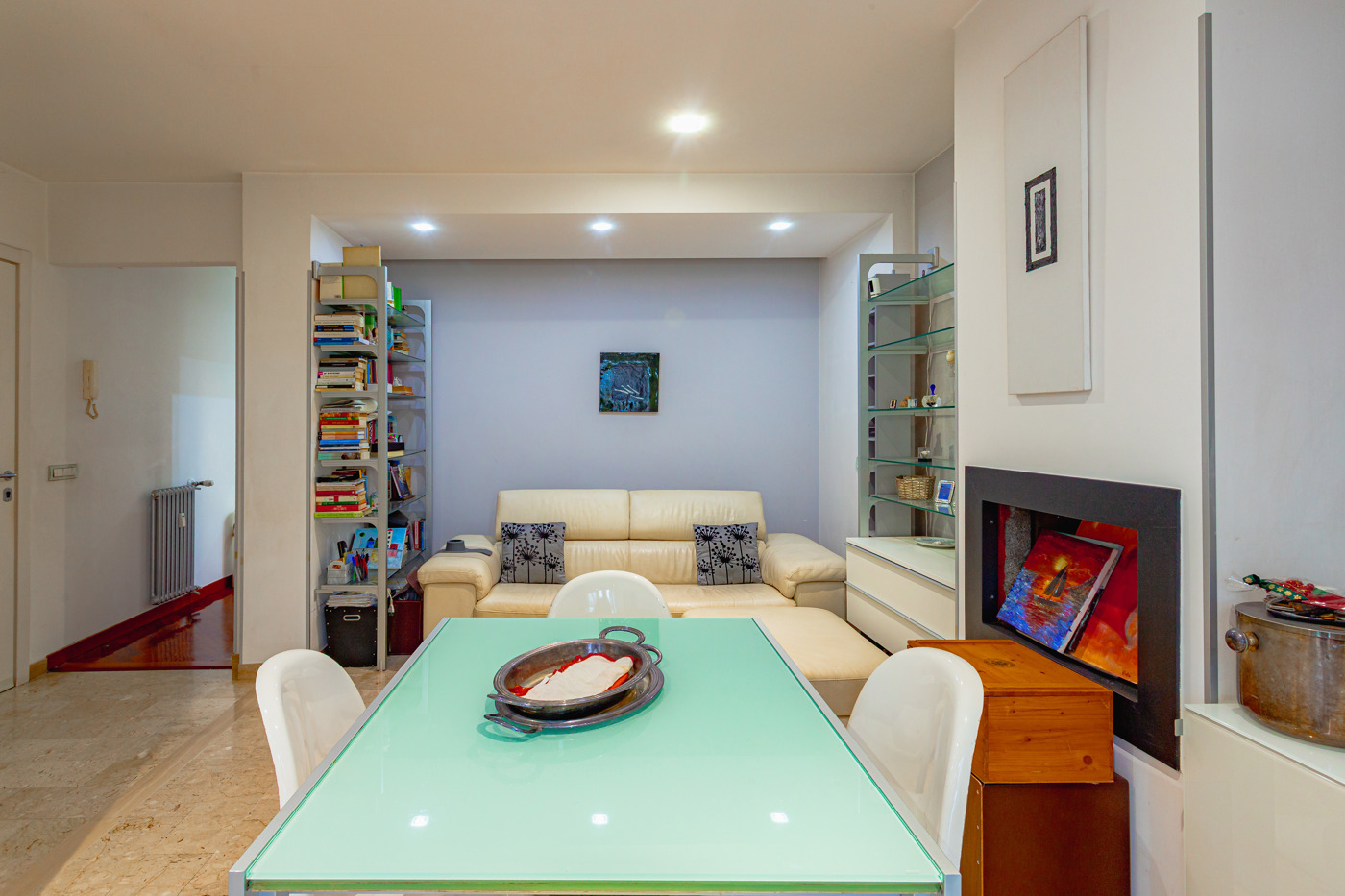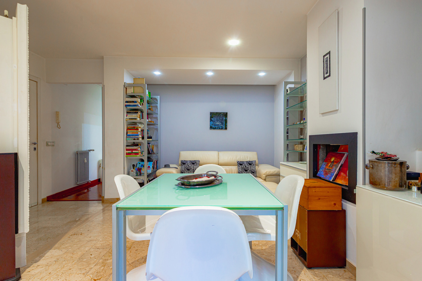 Dall'ingresso trova accesso la zona living, dove posto un camino che regala un'atmosfera accogliente e rilassante; annesso al soggiorno troviamo la cucina separata e funzionale.