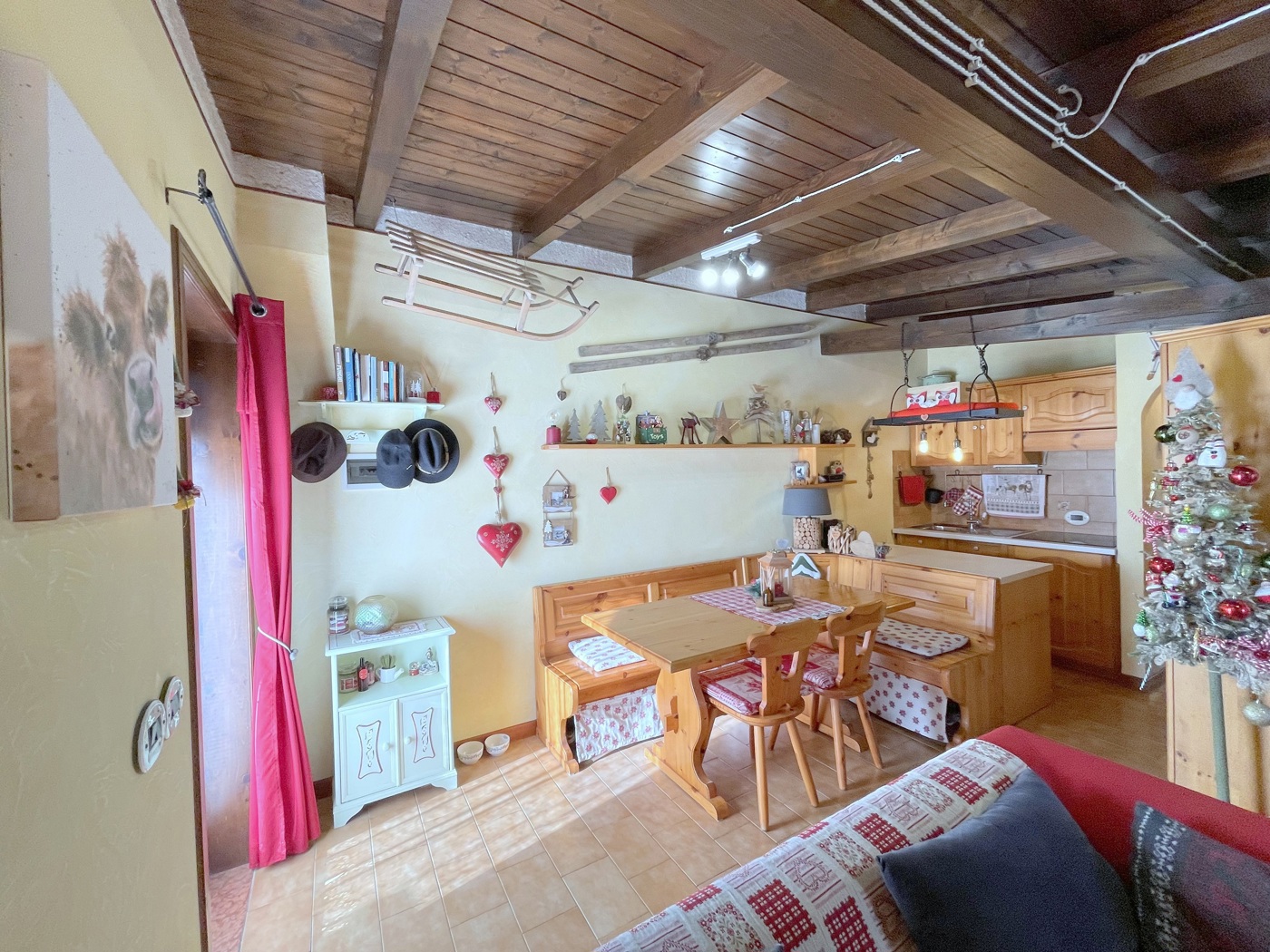 La presenza di un camino aggiunge un tocco di calore e charme all'ambiente, perfetto per le fredde serate invernali in montagna.