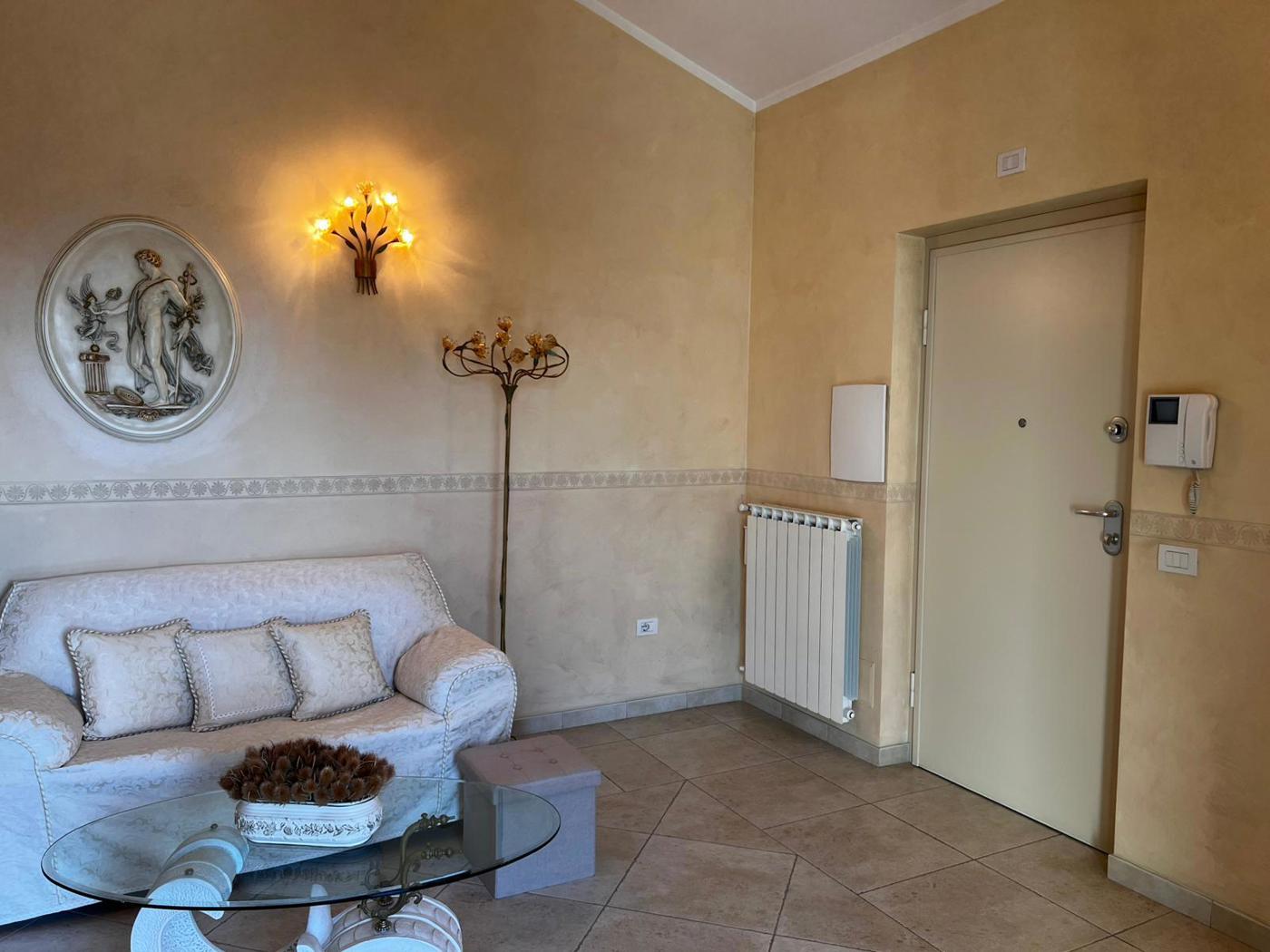 L'ingresso accogliente introduce a un luminoso salone, lo spazio ideale per momenti di relax e convivialit.