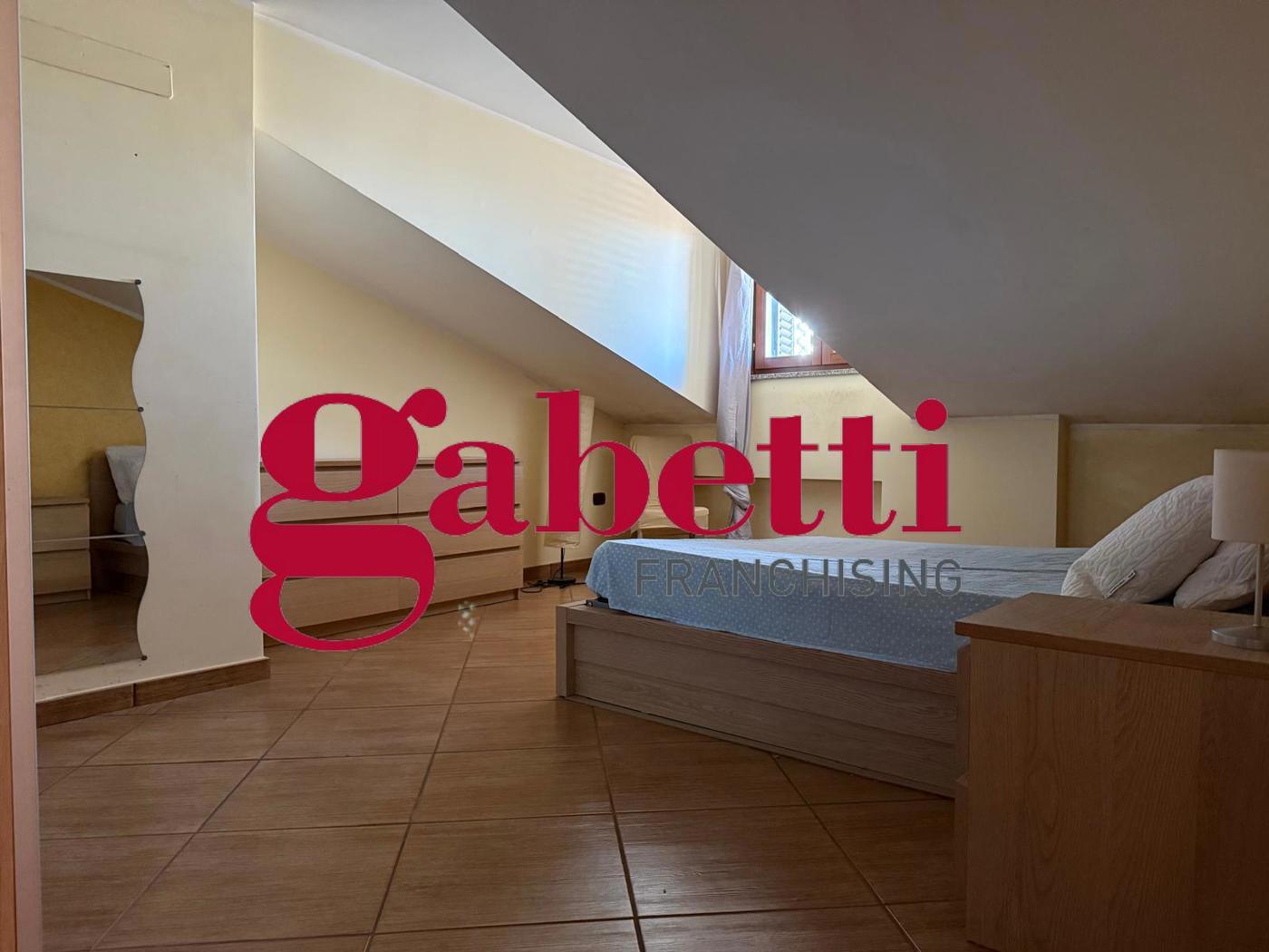 A pochi passi dalla rinomata via Leonardo da Vinci, zona di grande passaggio carrabile e pedonale con concentrazione di ogni servizio di prima necessit, quali supermercati, scuole, farmacie, etc., disponiamo di una mansarda in un complesso residenziale distinto, "Palazzo Dante", ed in ottimo stato interno, completamente arredata.