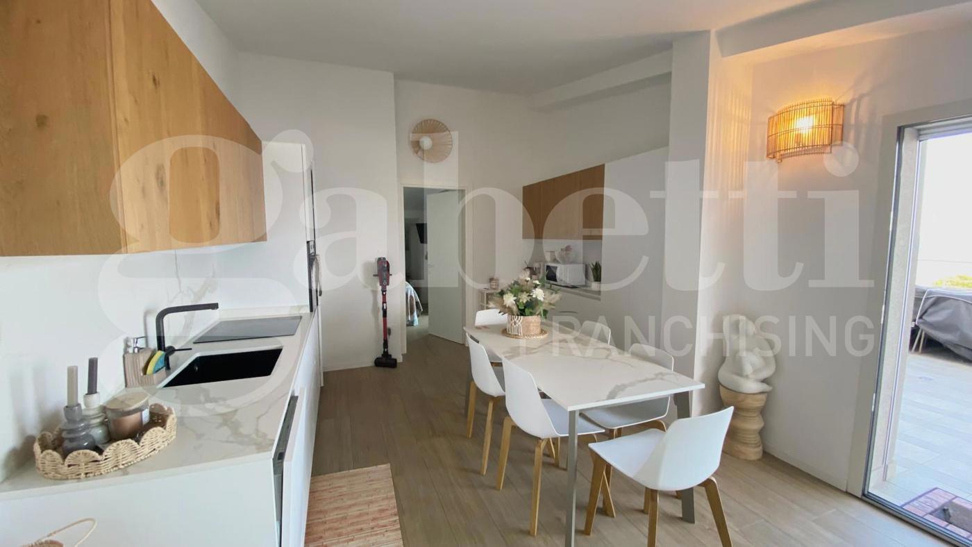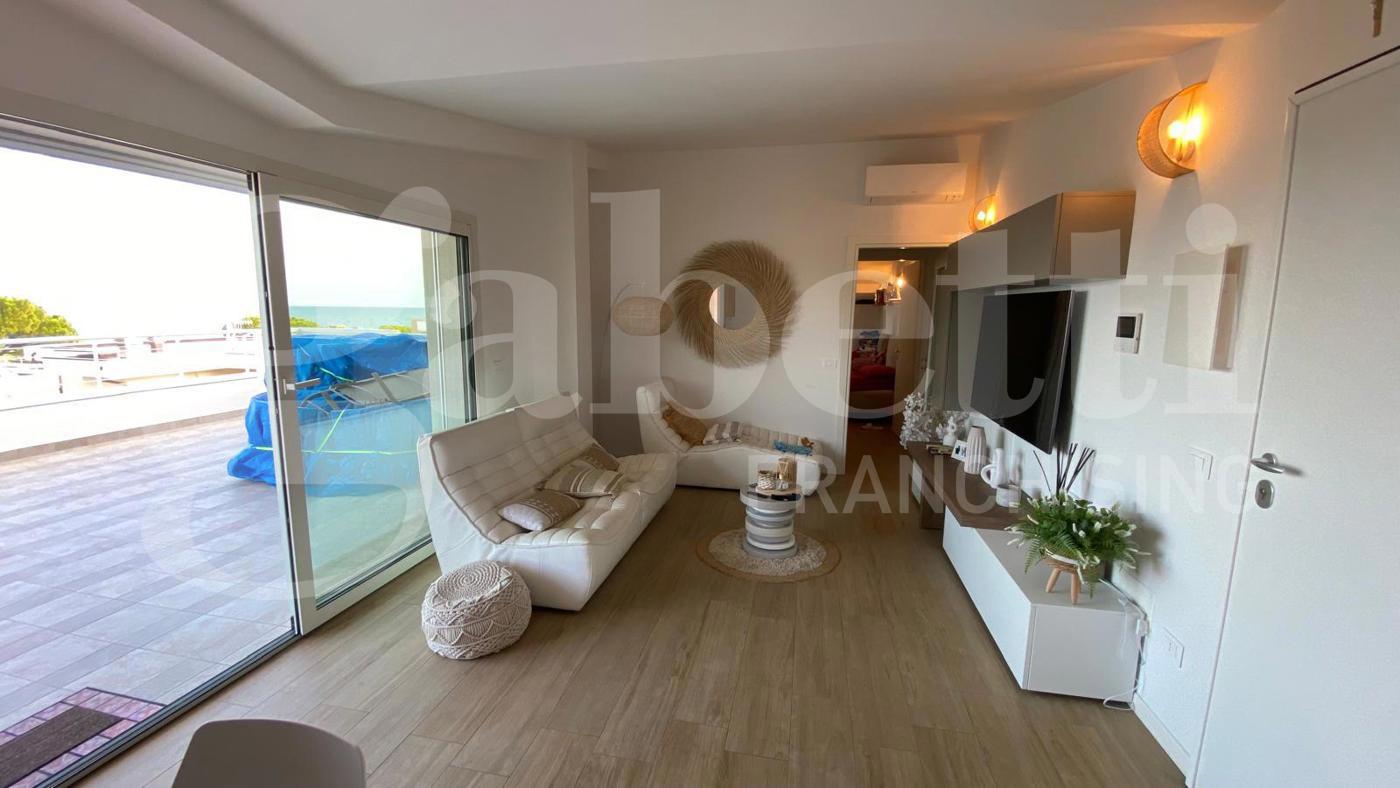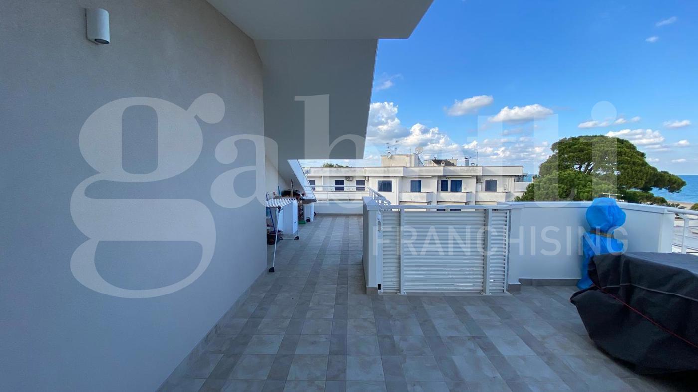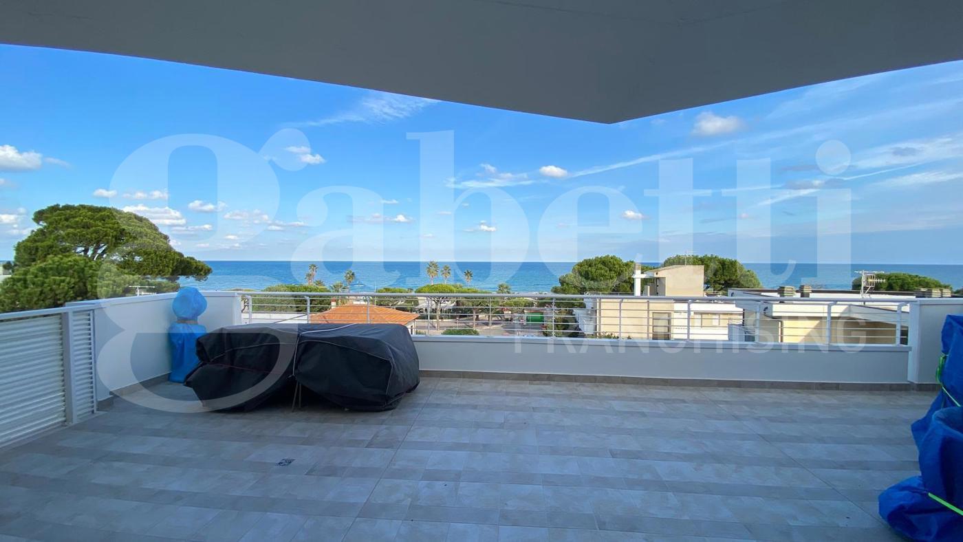 Il punto forte di questa propriet il grande terrazzo di 60 mq con vista mozzafiato sul mare, perfetto per godersi tramonti indimenticabili e cene all'aperto.