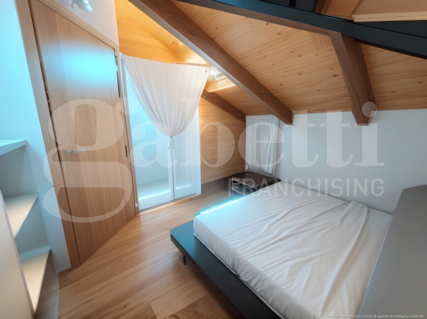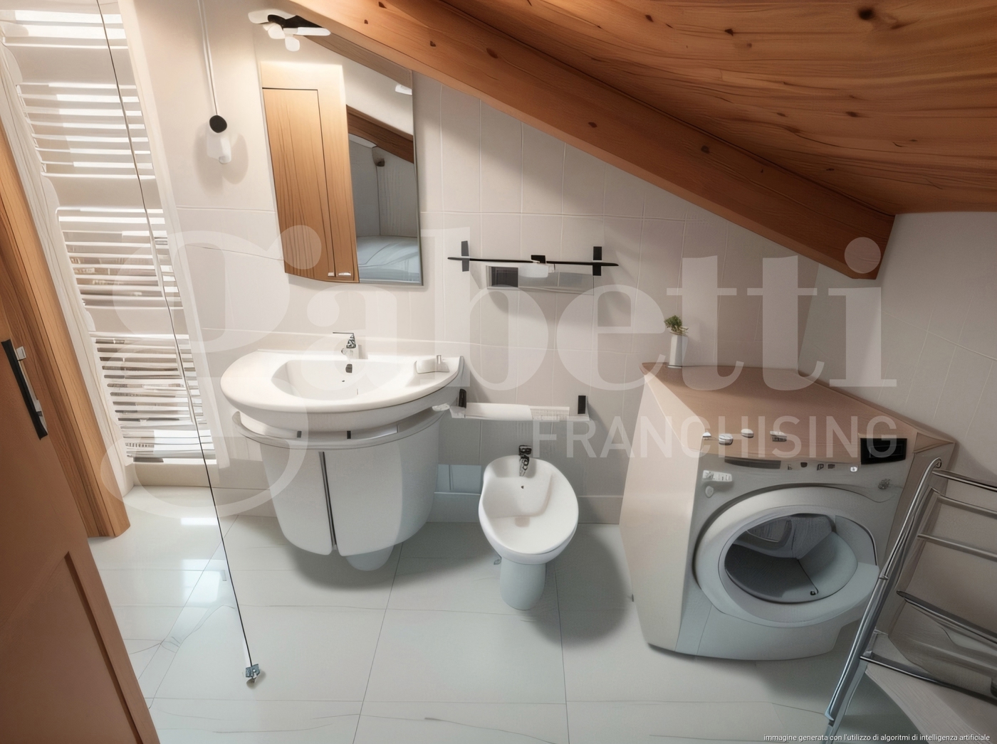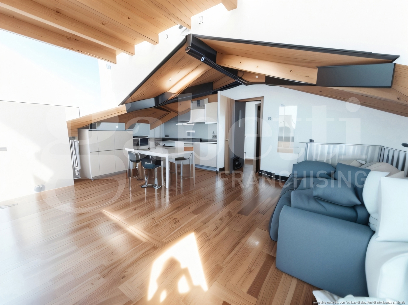 Questa accogliente attico mansardato di mq 50 dotato di ampie terrazze abitabili, arredato con gusto e cura, offre un'atmosfera accogliente e rilassante.