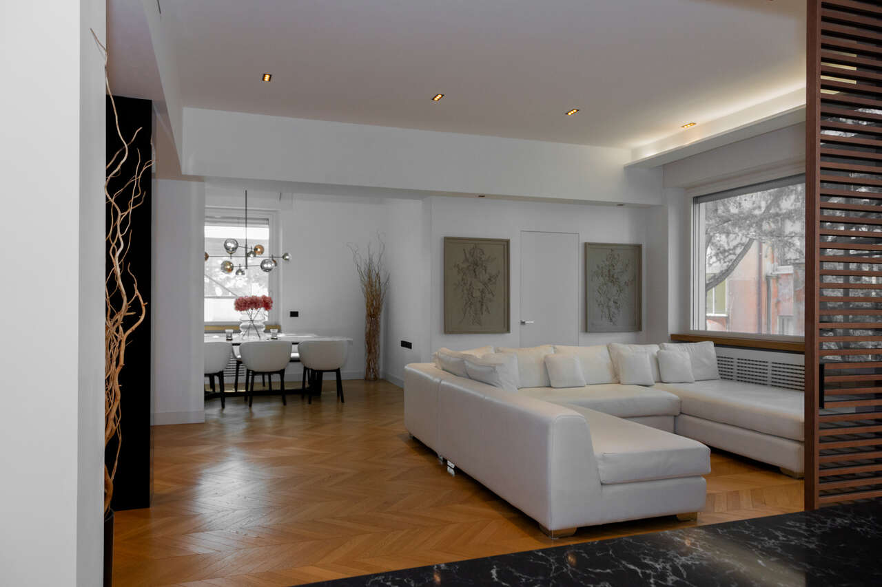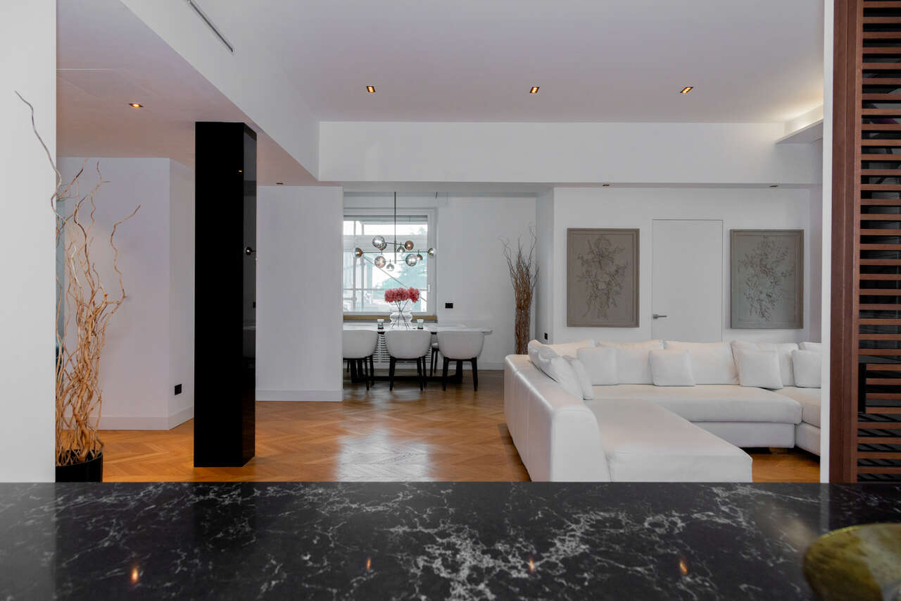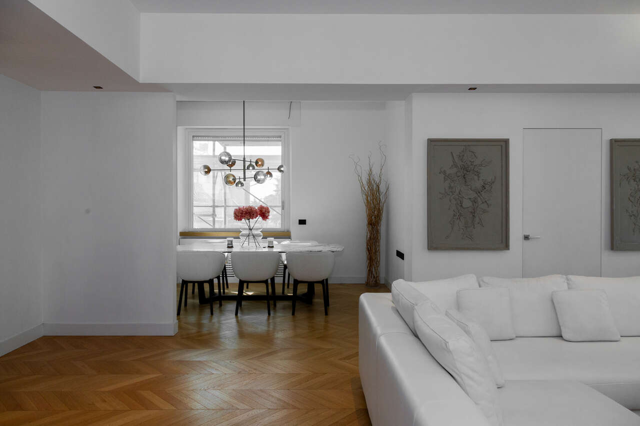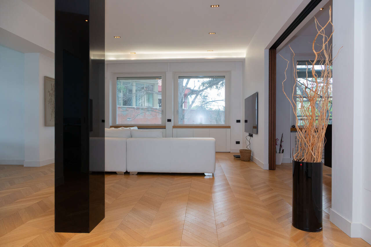 L'intero appartamento è impreziosito da pavimenti in parquet, grandi vetrate che inondano di luce naturale ogni ambiente, impianto di domotica e aria condizionata.