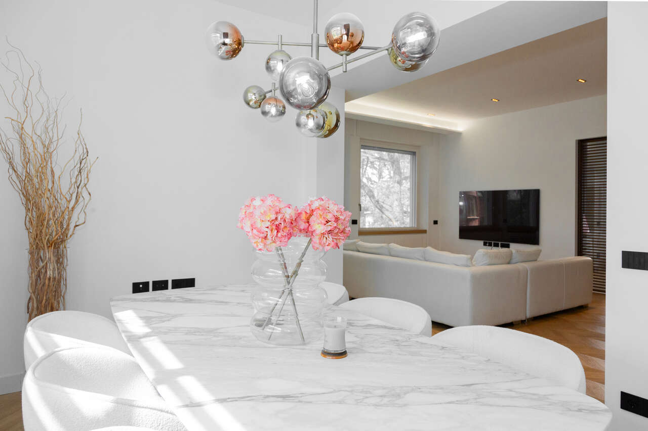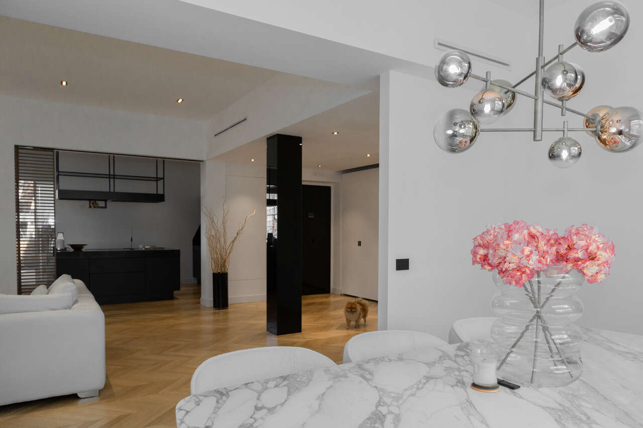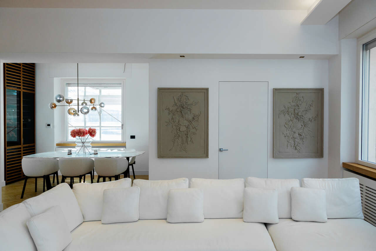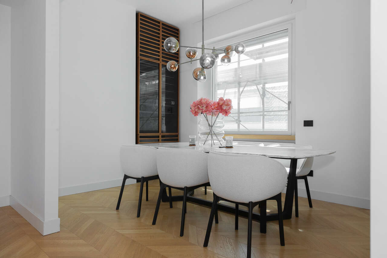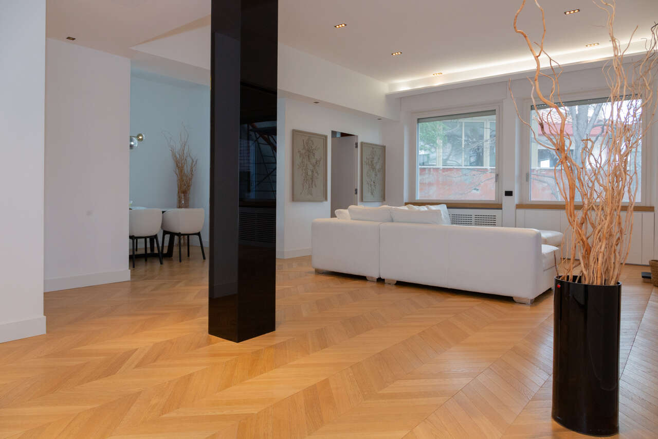 L'intero appartamento è impreziosito da pavimenti in parquet, grandi vetrate che inondano di luce naturale ogni ambiente, impianto di domotica e aria condizionata.