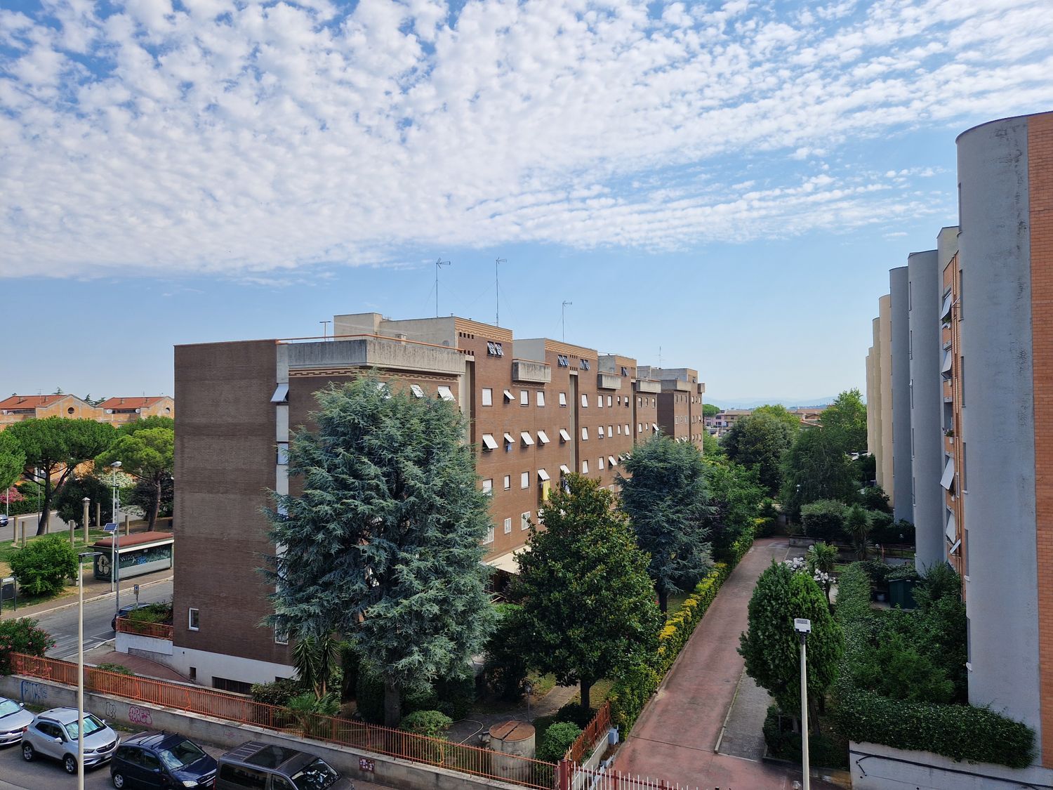 Ciampino - via bruxelles - vendesi attico con terrazzo panoramico in contesto residenziale con giardino condominiale, posto al quarto piano con ascensore, dotato di box auto e cantina.L'appartamento all'ultimo piano e' composto da soggiorno luminoso e cucina a vista arredata, entrambe con uscita sul terrazzo panoramico di circa 28 mq, disimpegno con armadio a muro, bagno finestrato con vasca-doccia e ampia camera matrimoniale con uscita sul medesimo terrazzo.