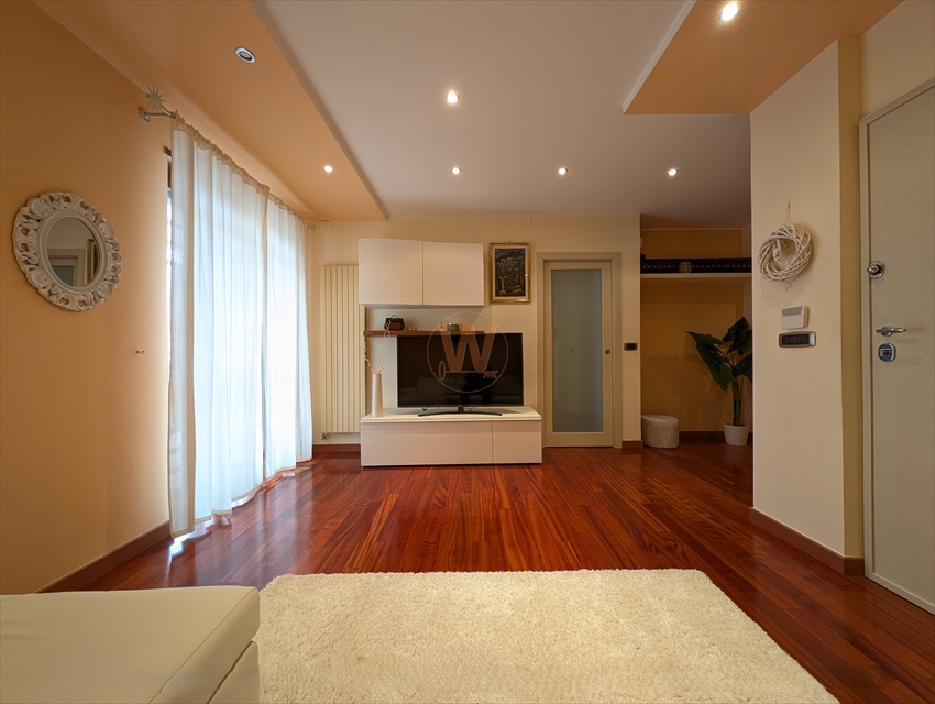 INTERNI RAFFINATI E CURA DEI DETTAGLI Limmobile si apre su un luminoso soggiorno living, valorizzato da una moderna controsoffittatura in cartongesso con faretti LED integrati che creano unatmosfera calda e accogliente.