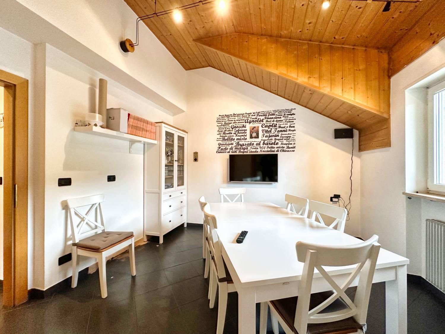 La pratica distribuzione degli spazi su due livelli crea il perfetto equilibrio: al piano terra vi aspettano un accogliente soggiorno con camino riscaldante, una cucina spaziosa e luminosa con balcone adiacente, una sala da pranzo separata e un confortevole bagno.