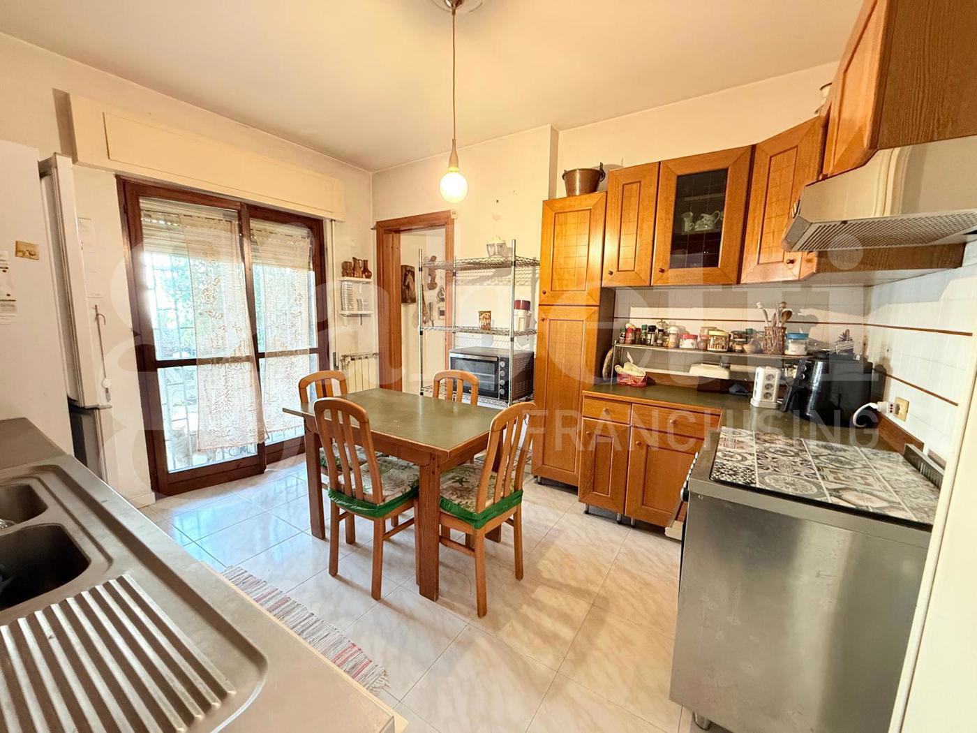 Entrando nell'appartamento ci delizia un ampio soggiorno con camino attualmente non in uso, cucina abitabile con armadio a muro adibito a lavanderia; attraverso un disimpegno accediamo alla zona notte, dove troviamo una spaziosa camera da letto matrimoniale con armadio a muro e bagno interno, due camerette e un secondo bagno con vasca.