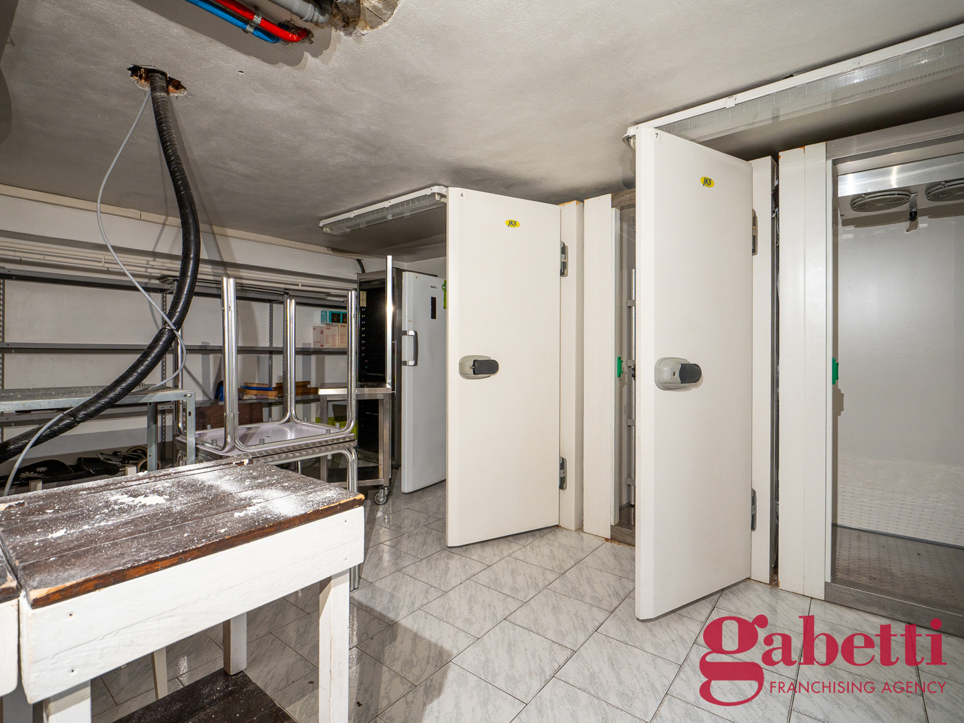Il locale si compone di: - Ampio ingresso con area somministrazione - Sala con bancone, tavoli e sedute - Cucina abitabile con canna fumaria - Antibagno e due bagni - Ampio magazzino al piano seminterrato, open space Completano la proposta: - Servizio di portineria, giardino condominiale, stabile in ottime condizioni - Arredo completo disponibile: ampio bancone, cucina attrezzata, tre celle frigorifere, frigo, cantinetta vini, tavoli e sedie (acquisto da concordare separatamente) Disponibilit immediata.