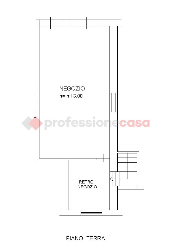 Limmobile si compone di: piano terra con ambiente principale ideale per attivit commerciali o uffici professionali, oltre a locale deposito; piano seminterrato con ulteriore deposito, bagno e antibagno.