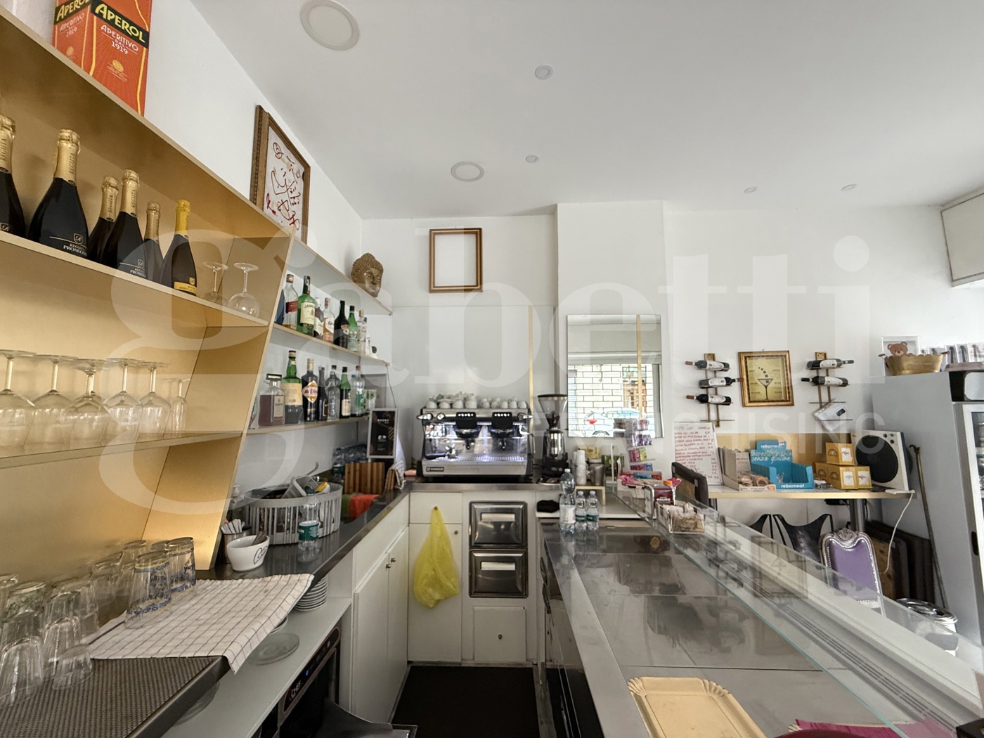 La vendita comprende: bancone bar e retro banco attrezzato, arredamento completo della sala con tavolini, sedie e panche contenitore, cucinotta.