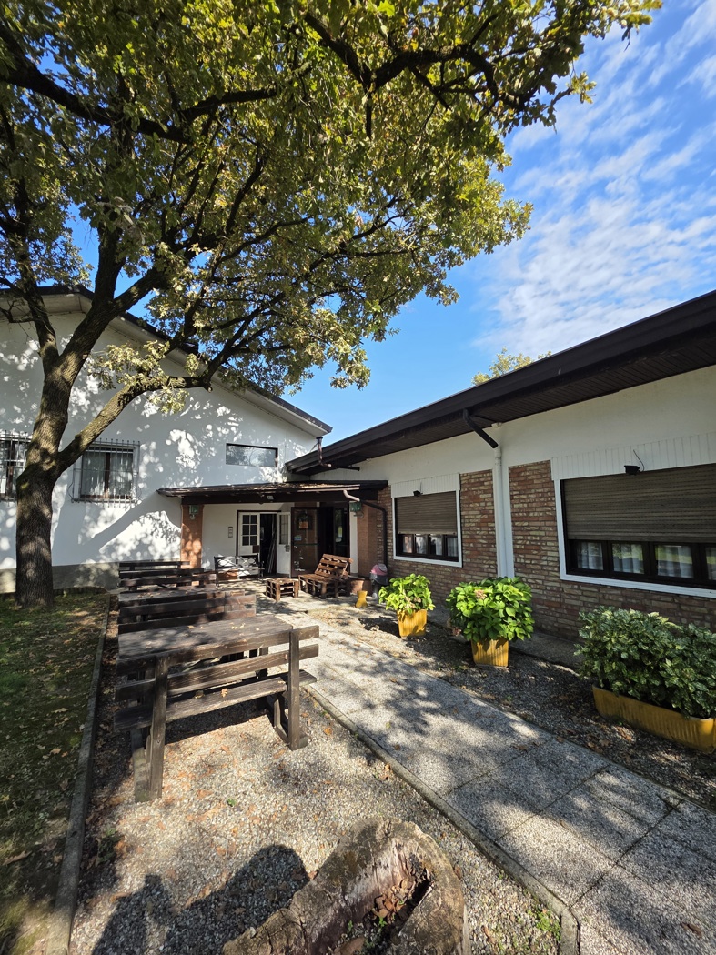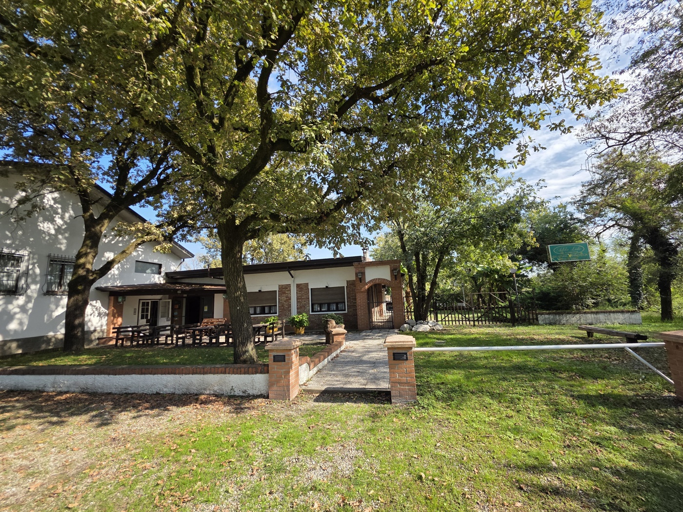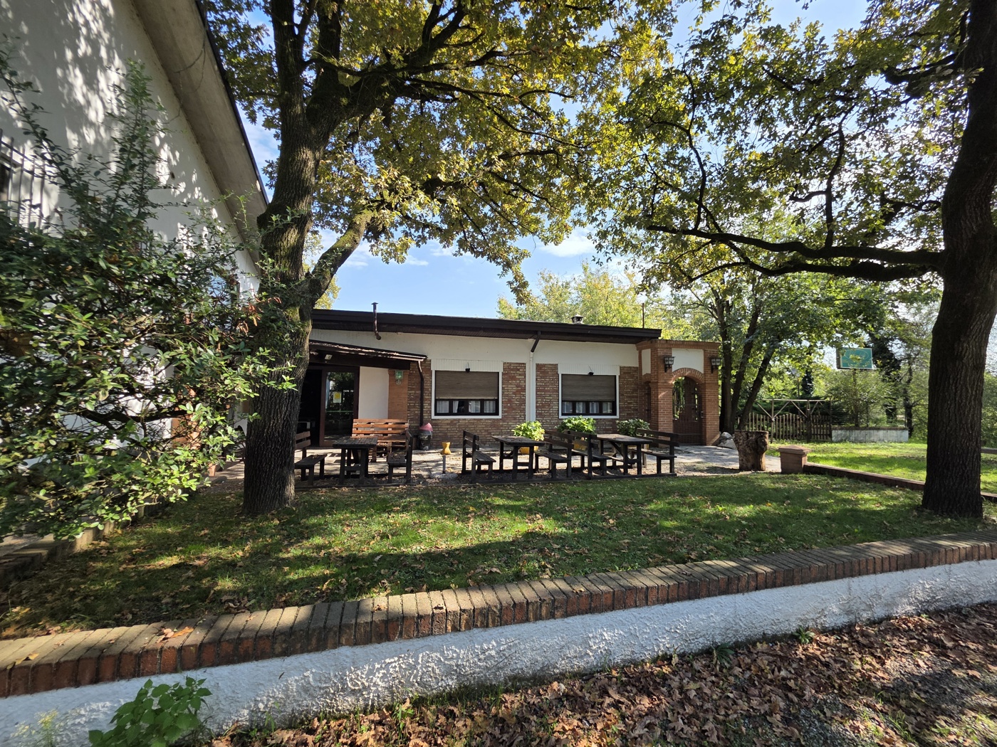 La struttura di circa 550 mq con veranda e terrazza collocata in circa 2000 mq di verde affacciata direttamente sul fiume.