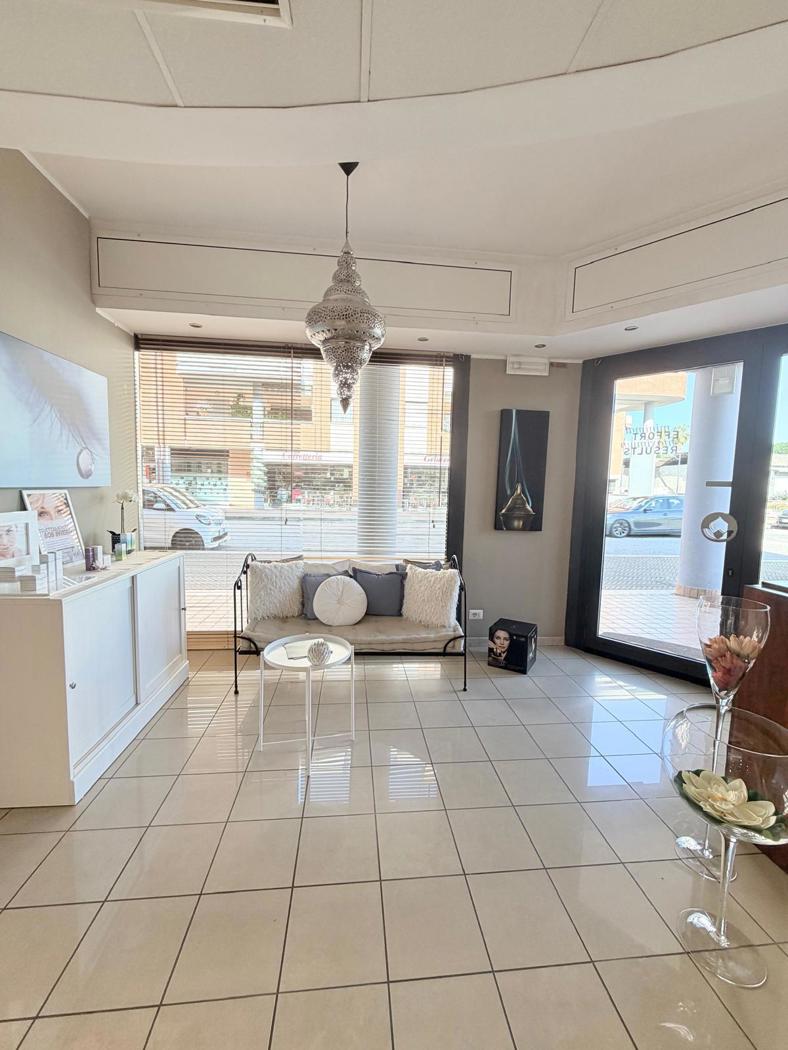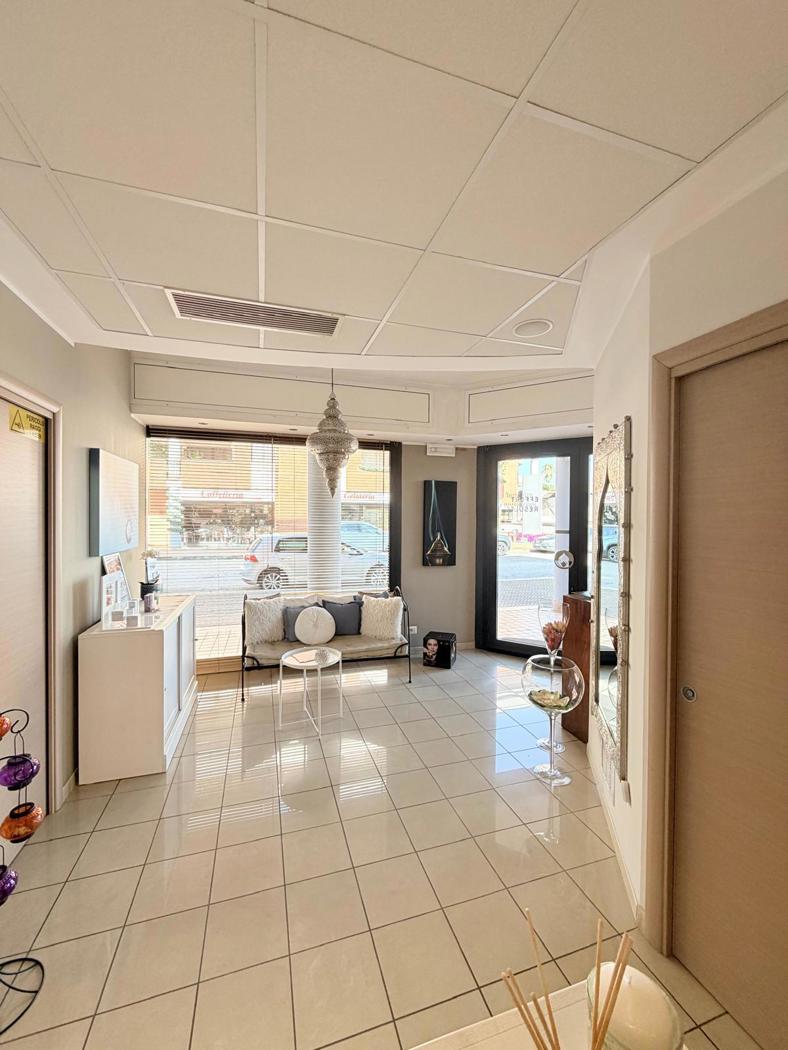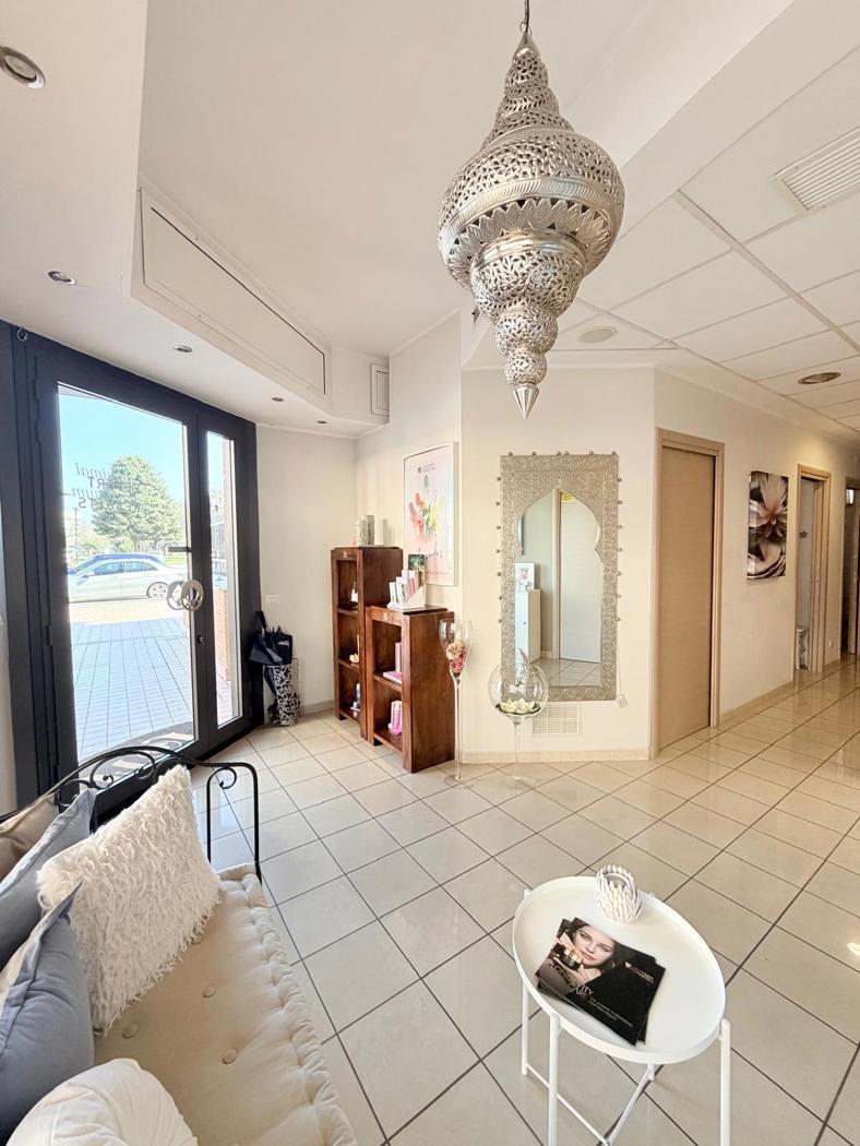Due ampie vetrine su strada, vetrina d'ingresso e altre due laterali, garantiscono una buona ***.*******.** con sala dattesa per i clienti con reception,5 cabine operative, cos suddivise:1 cabina massaggi, 1 cabina pedicure,1 cabina dedicata allonicotecnica, 2 cabine attrezzate per epilazione e trattamenti viso e corpo e 2 servizi igienici, uno per la clientela e uno riservato al personale.