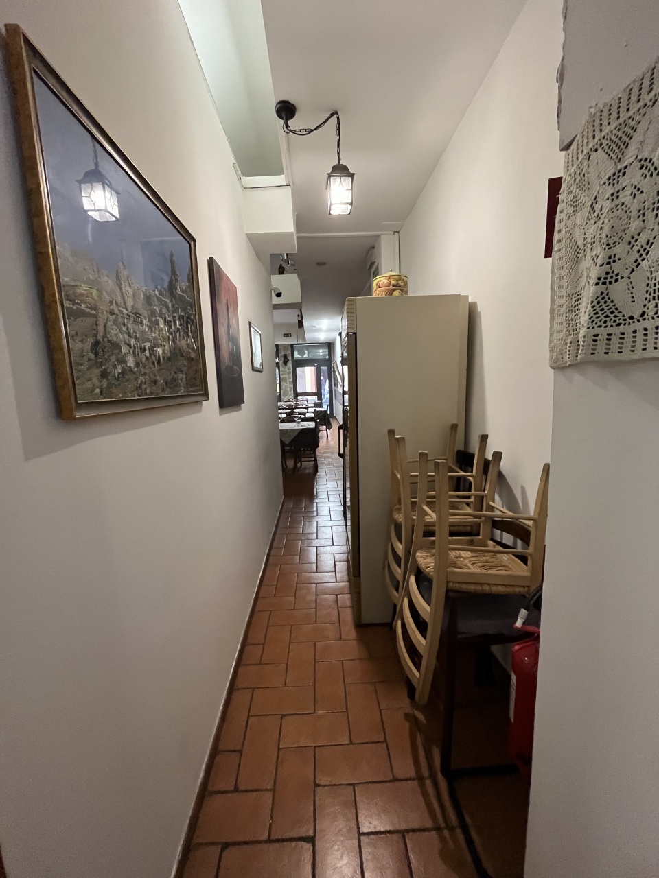 Due vetrine, 40 coperti interni e possibilità di ulteriori coperti esterni sottoportico.