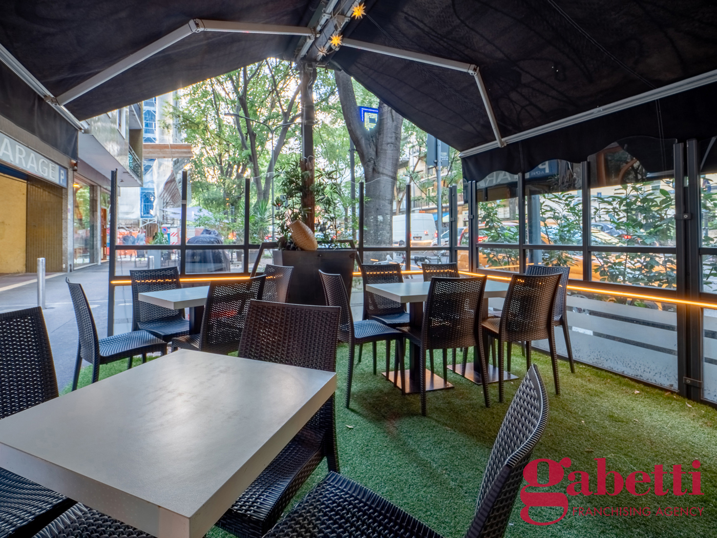 Tre vetrine su strada garantiscono visibilit eccellente e forte passaggio pedonale, con dehor esterno in concessione.