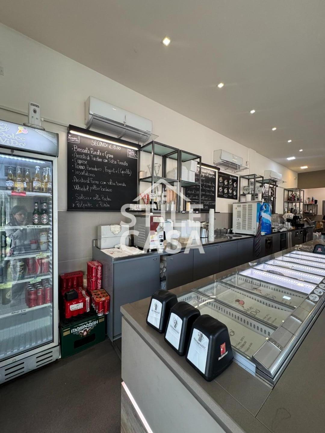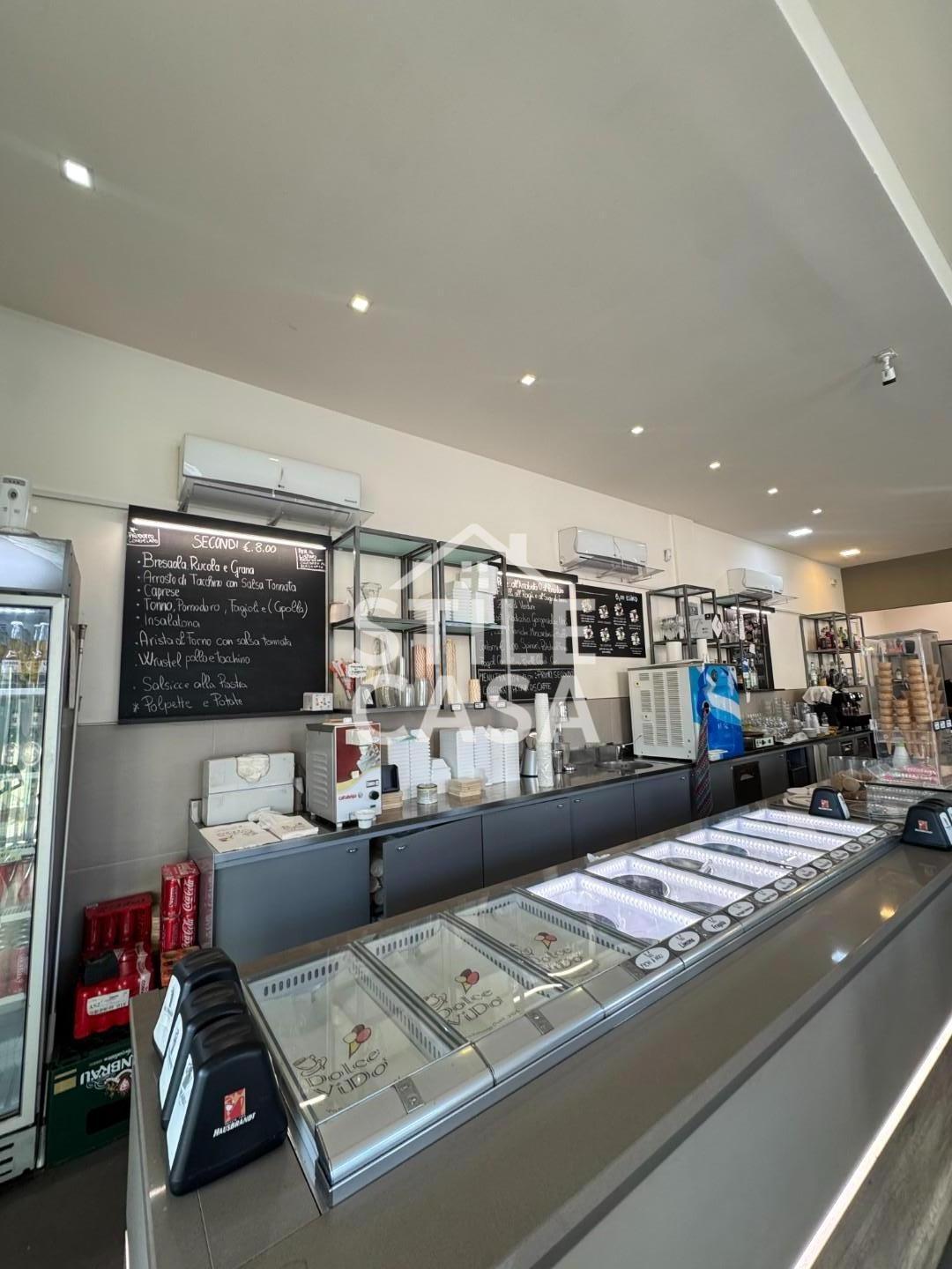 Caratteristiche principali dellattività Locale di circa 150 mq in open space, moderno e funzionale Bancone bar e gelateria completamente attrezzato Cucina professionale completa di tutto: canna fumaria, friggitrice, forno (elettrico o predisposto a legna), dispensa e spogliatoio Bagni a norma, inclusi servizi per disabili Quattro grandi frigoriferi per dolci, gelati e bevande Dieci vetrine, tre ingressi, e resede esterna privata con veranda, tende da sole e area tavoli Riscaldamento e condizionamento ad aria, impianto dallarme, videosorveglianza e locale cablato di nuova generazione ? Attività attualmente operativa come: Bar e caffetteria Colazioni e pranzi di lavoro Merende e aperitivi Gelateria e yogurteria Possibilità di serate a tema, cene, eventi e musica dal vivo ? Licenze e permessi Tutte le licenze e le autorizzazioni necessarie per bar, ristorazione, friggitoria e gelateria sono già attive.