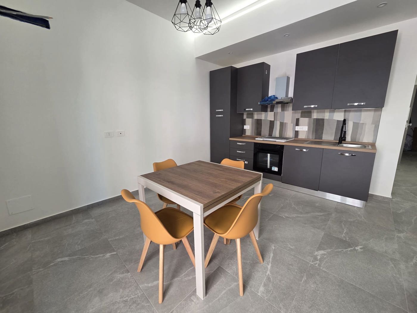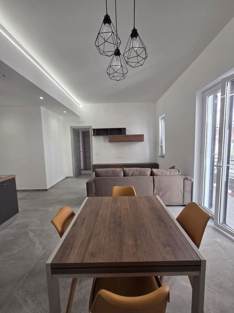 Lappartamento arredato con mobilio nuovo e di pregio ed composto da ampia zona giorno con angolo cottura, camere da letto e bagno.