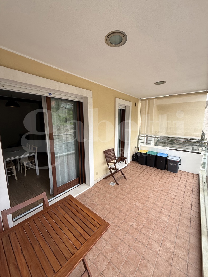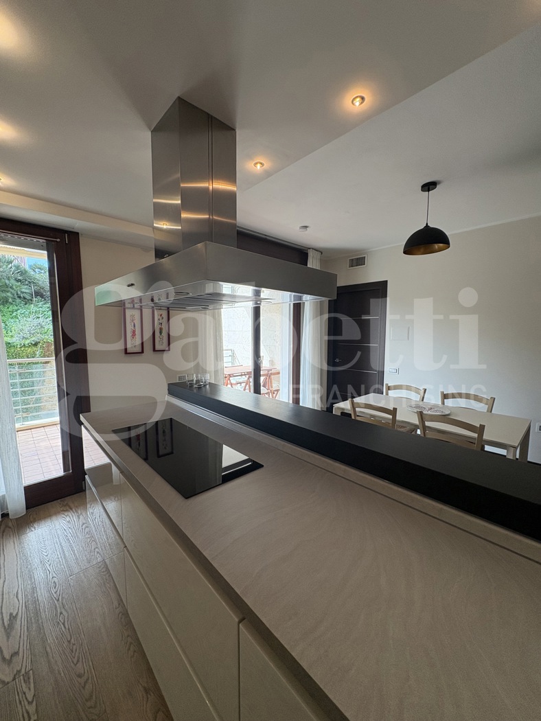 Lunit abitativa si apre su un soggiorno con cucina a vista, completa di isola e piano cottura a induzione e elettrodomestici di primaria marca, ambiente luminoso e ben organizzato con accesso diretto a una comoda veranda abitabile, ideale per momenti di relax o pranzi allaperto.