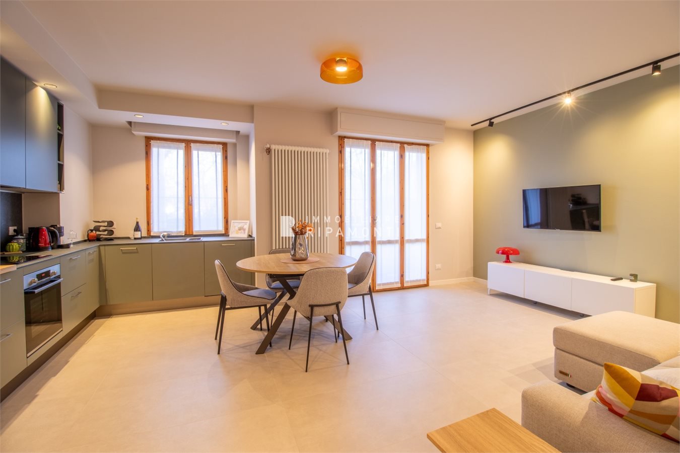 \nE' stato completamente ristrutturato a nuovo, con finiture signorili scelte architettoniche e progettuali studiate da professionisti che hanno reso l'immobile comparabile ad appartamenti di livello superiore sia per le finiture che per gli arredi, è adatto a chi desidera scegliere il meglio e vivere in un ambiente nuovo, di pregio e signorile.