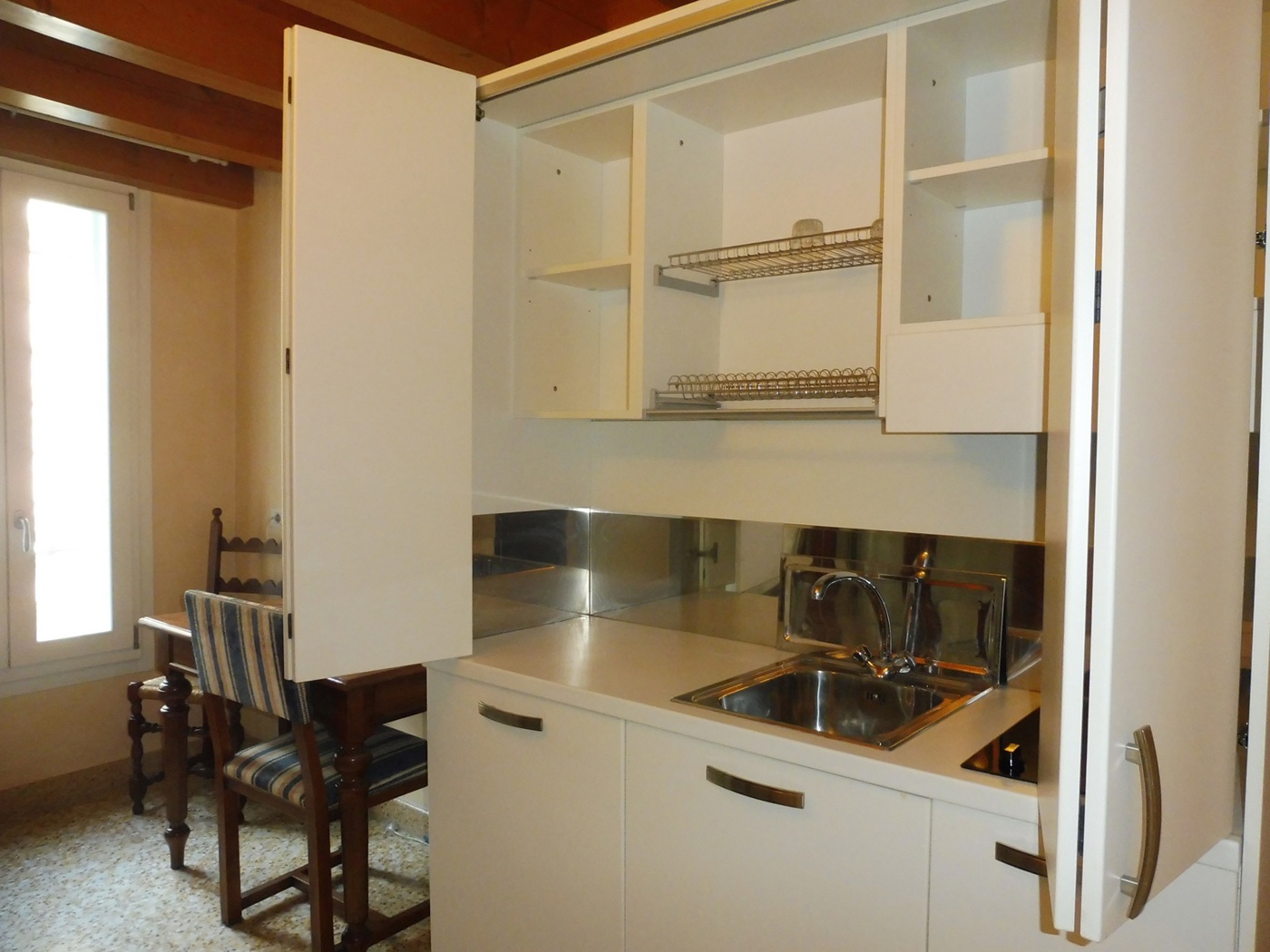 In Piazza degli Scacchi, mini appartamento al piano primo con piccola zona giorno con uscita su terrazzo interno, angolo cottura, grande camera matrimoniale con uscita sul medesimo terrazzo e bagno.