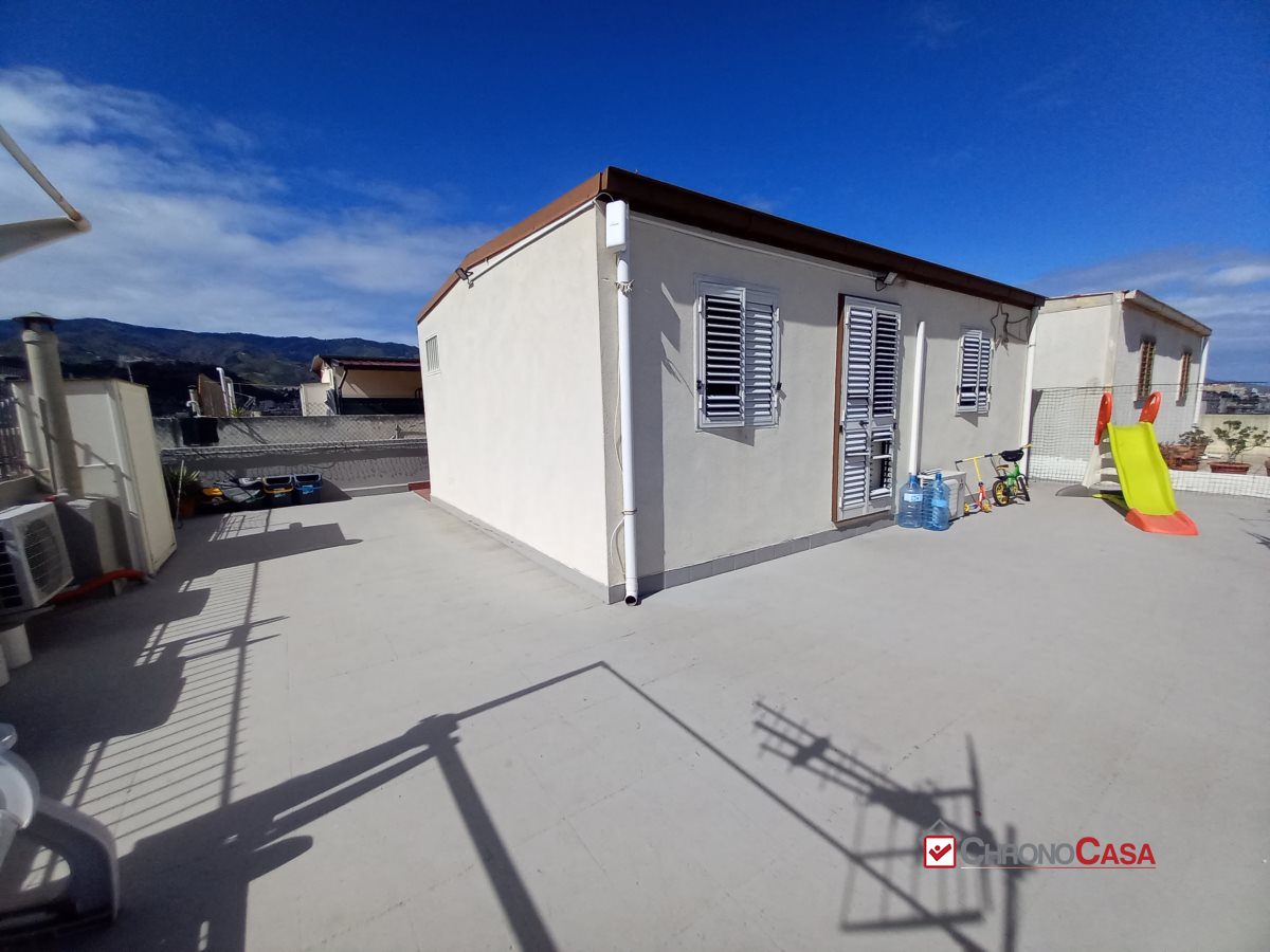 Via Antonino Siligato n.4. Gazzi.\nAgenzia immobiliare Chronocasa, filiale della zona Sud, propone in affitto a Gazzi, luminoso monolocale al sesto piano con ascensore.\nL'immobile si presenta come un attico su un terrazzo ed ha una metratura di mq 60 ed è composto da: ingresso su cucina abitabile, camera da letto e bagno.\nTerrazzo a livello che circonda l'intero immobile.\nPavimento in cotto.