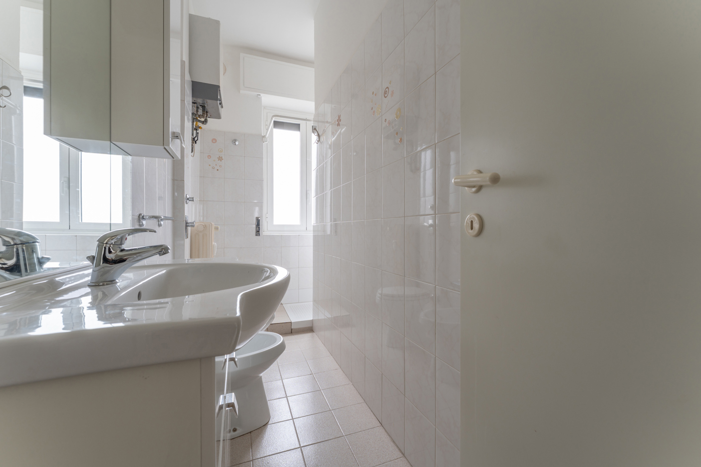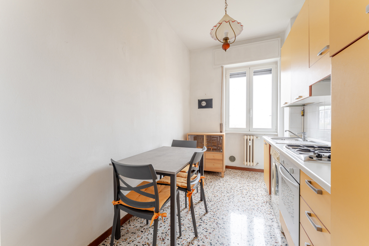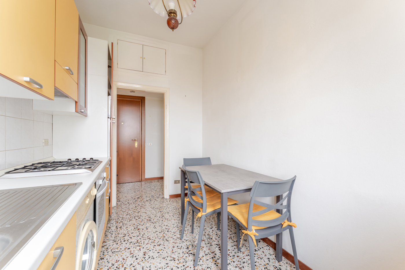 L'appartamento, situato al 4°PIANO di un condominio con servizio di portineria ed ascensore, gode di una luminosa esposizione ad Est con affaccio diretto sul verde.