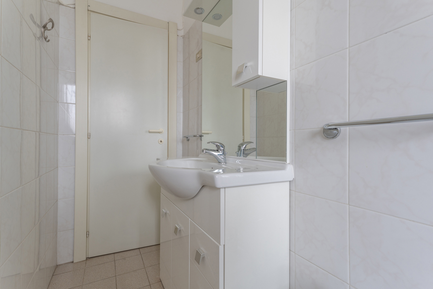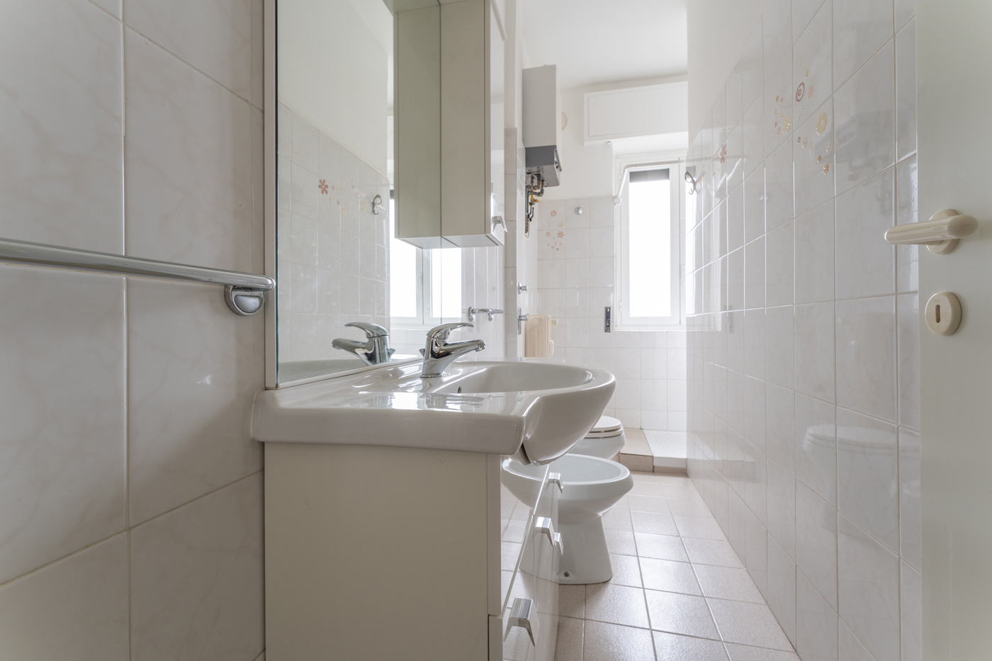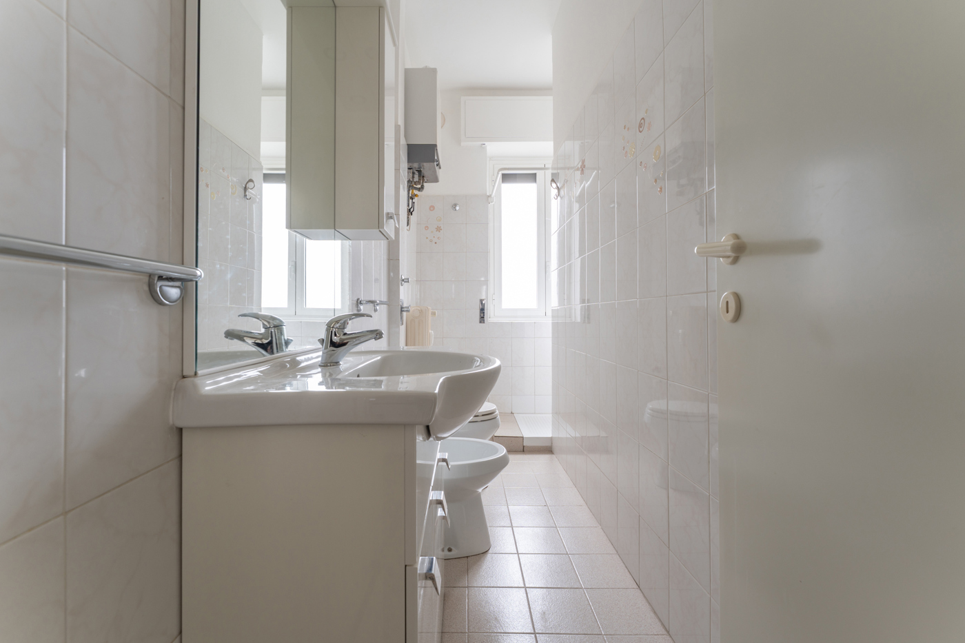 L'appartamento, situato al 4°PIANO di un condominio con servizio di portineria ed ascensore, gode di una luminosa esposizione ad Est con affaccio diretto sul verde.