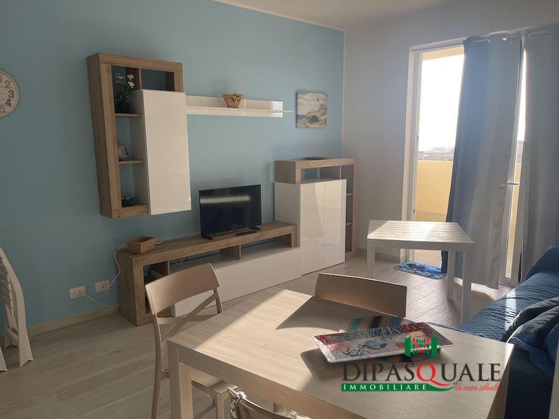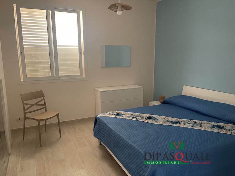 Cucina-soggiorno con accesso alla comoda veranda vista mare, camera da letto matrimoniale, divano letto in soggiorno, bagno.